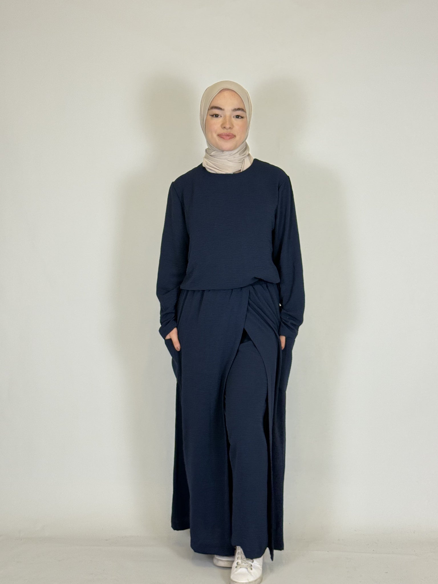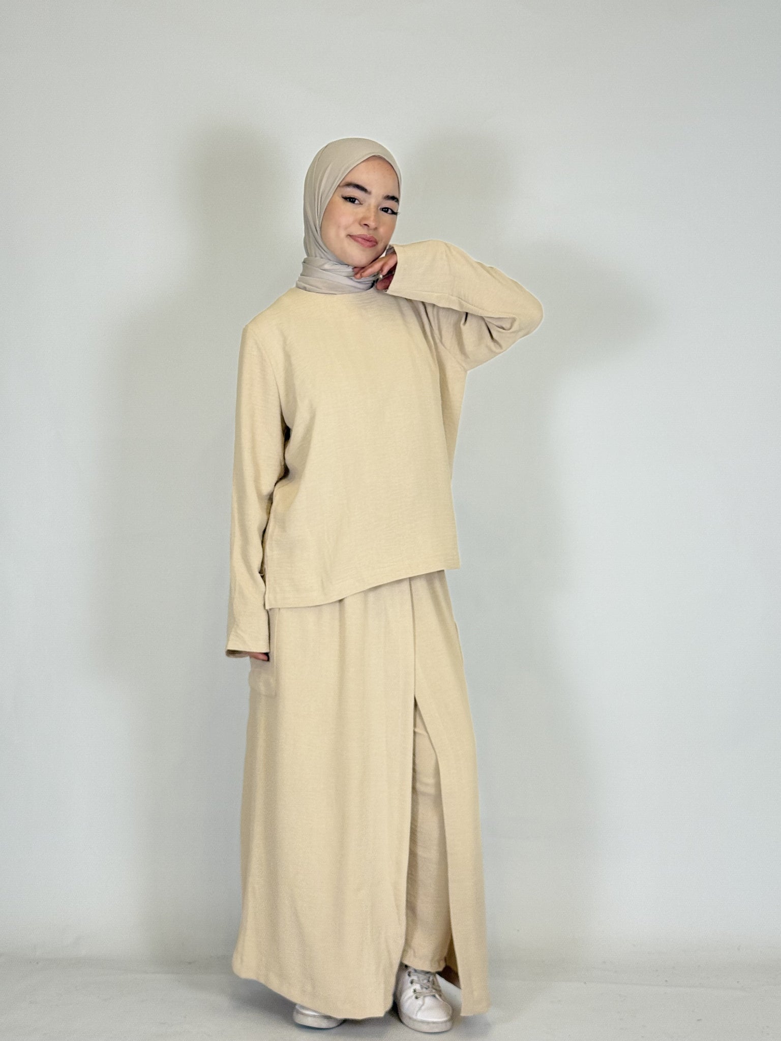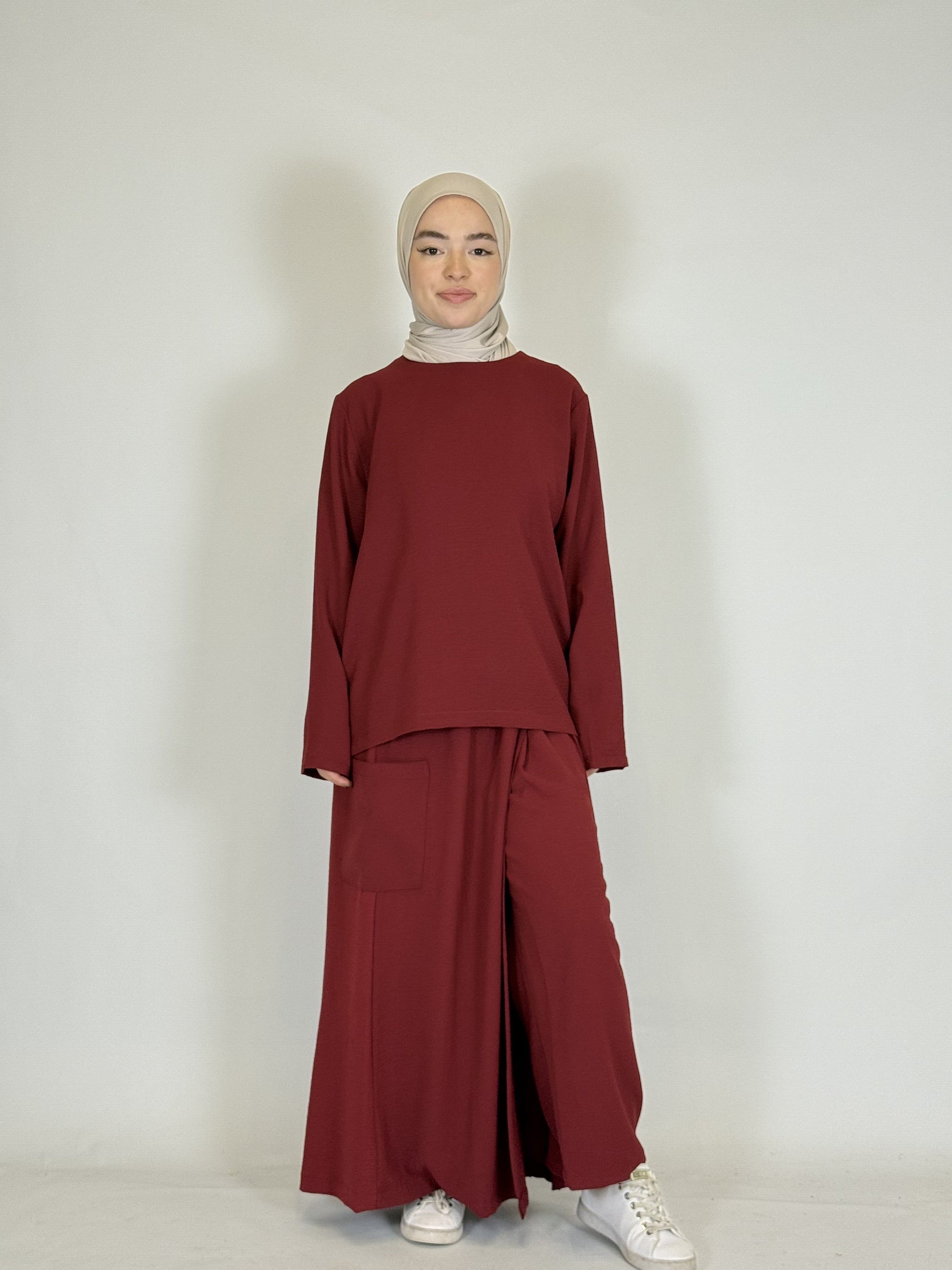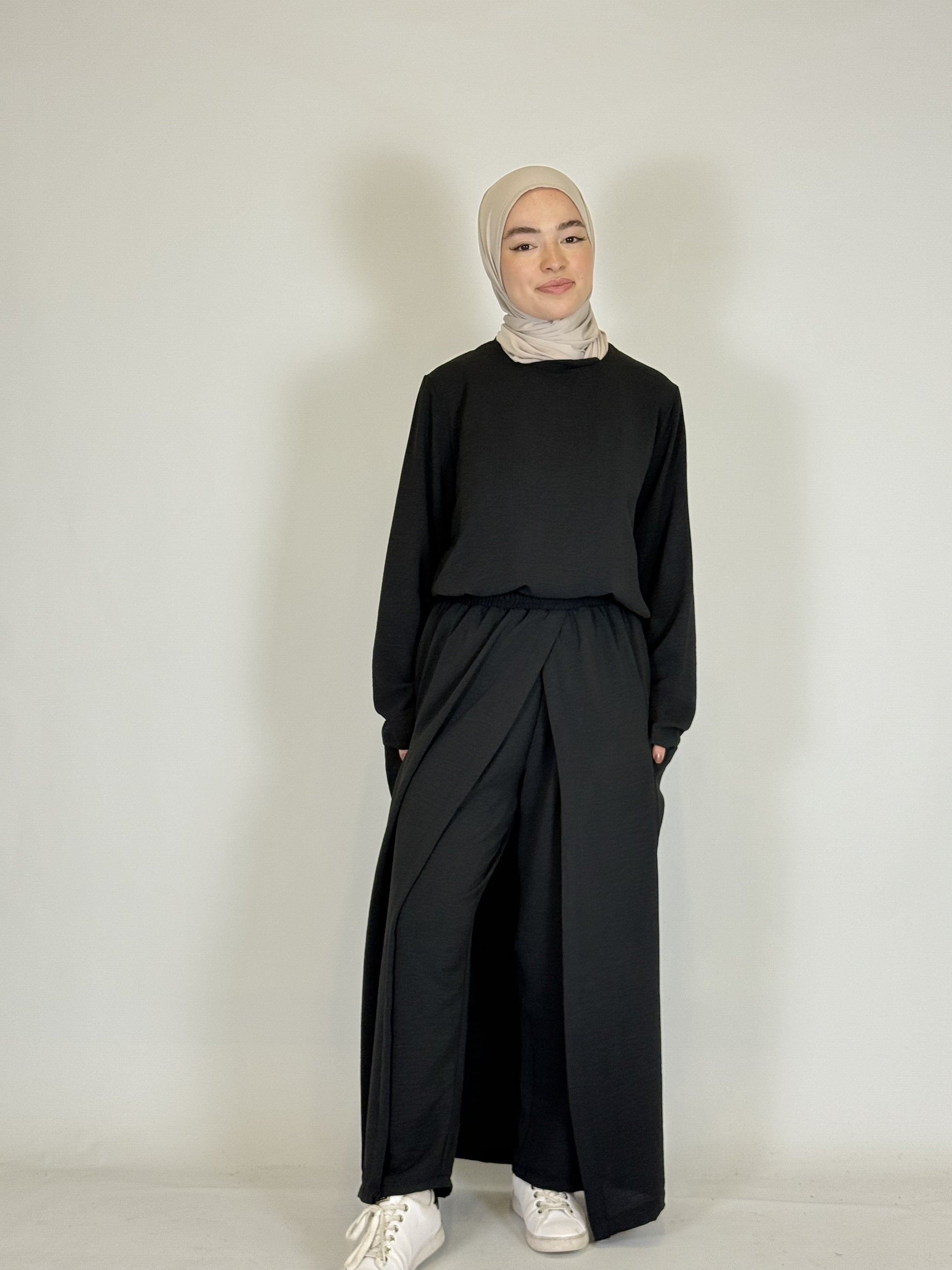 Das lange Oberteil rundet den modesten Look perfekt ab.