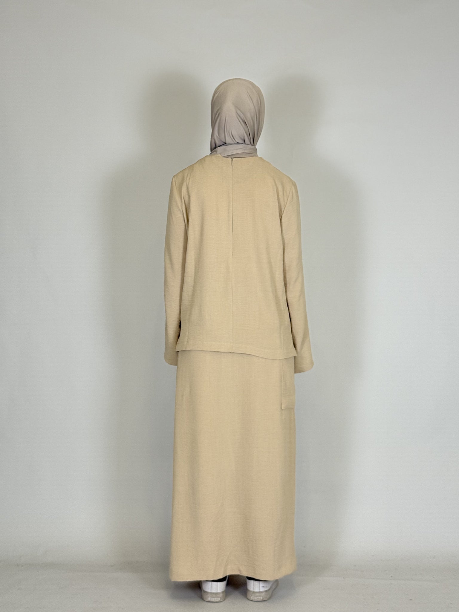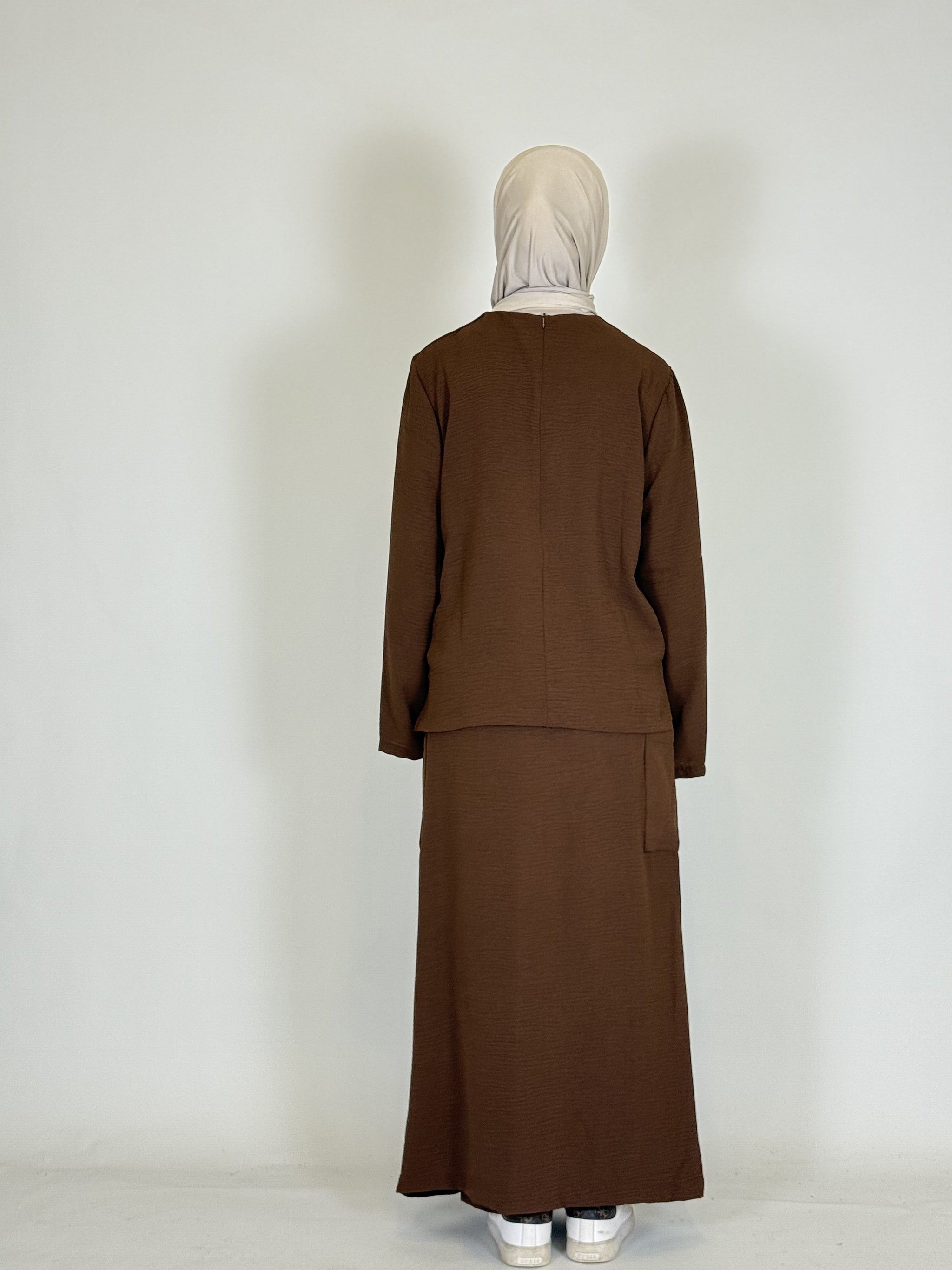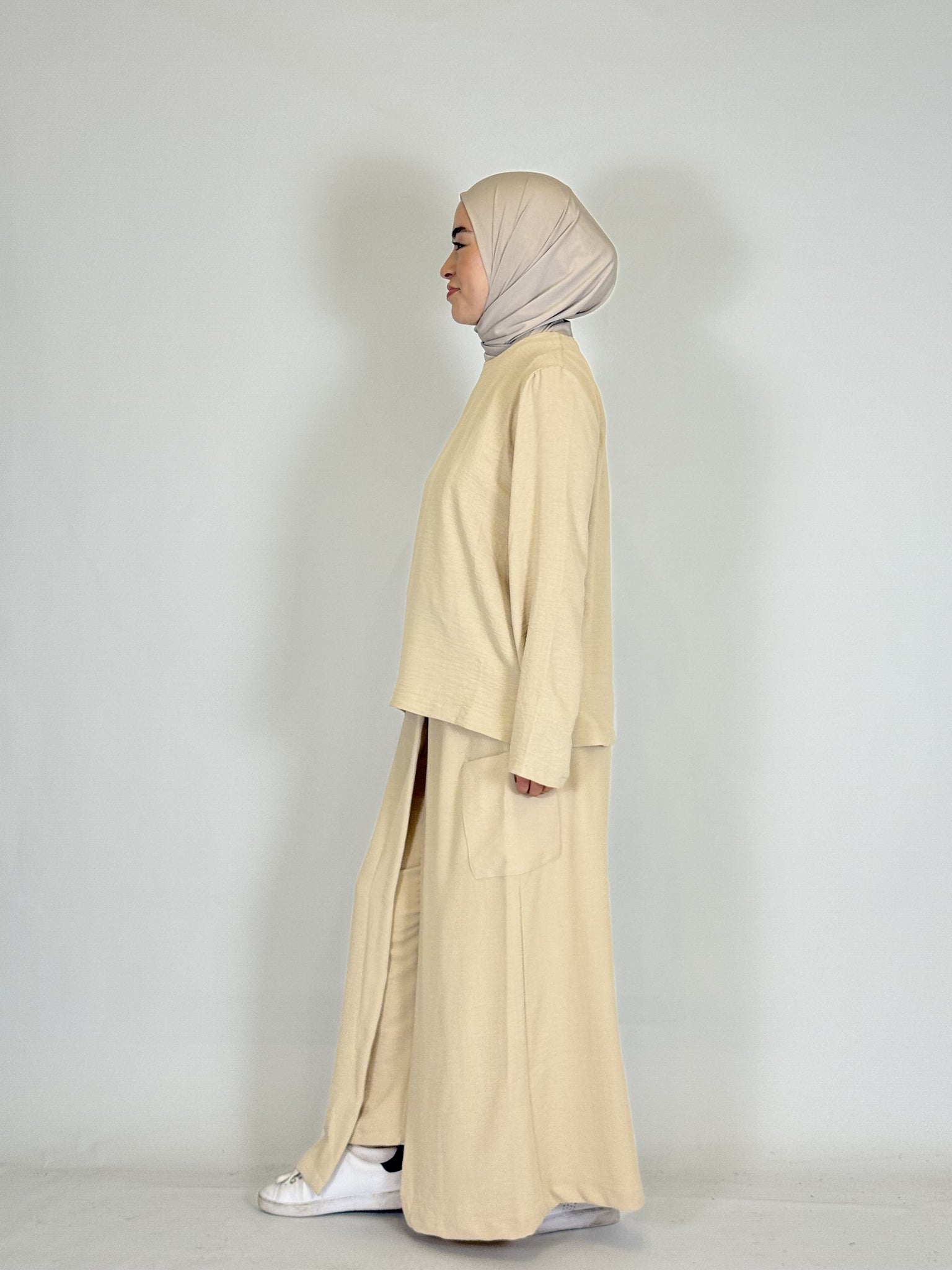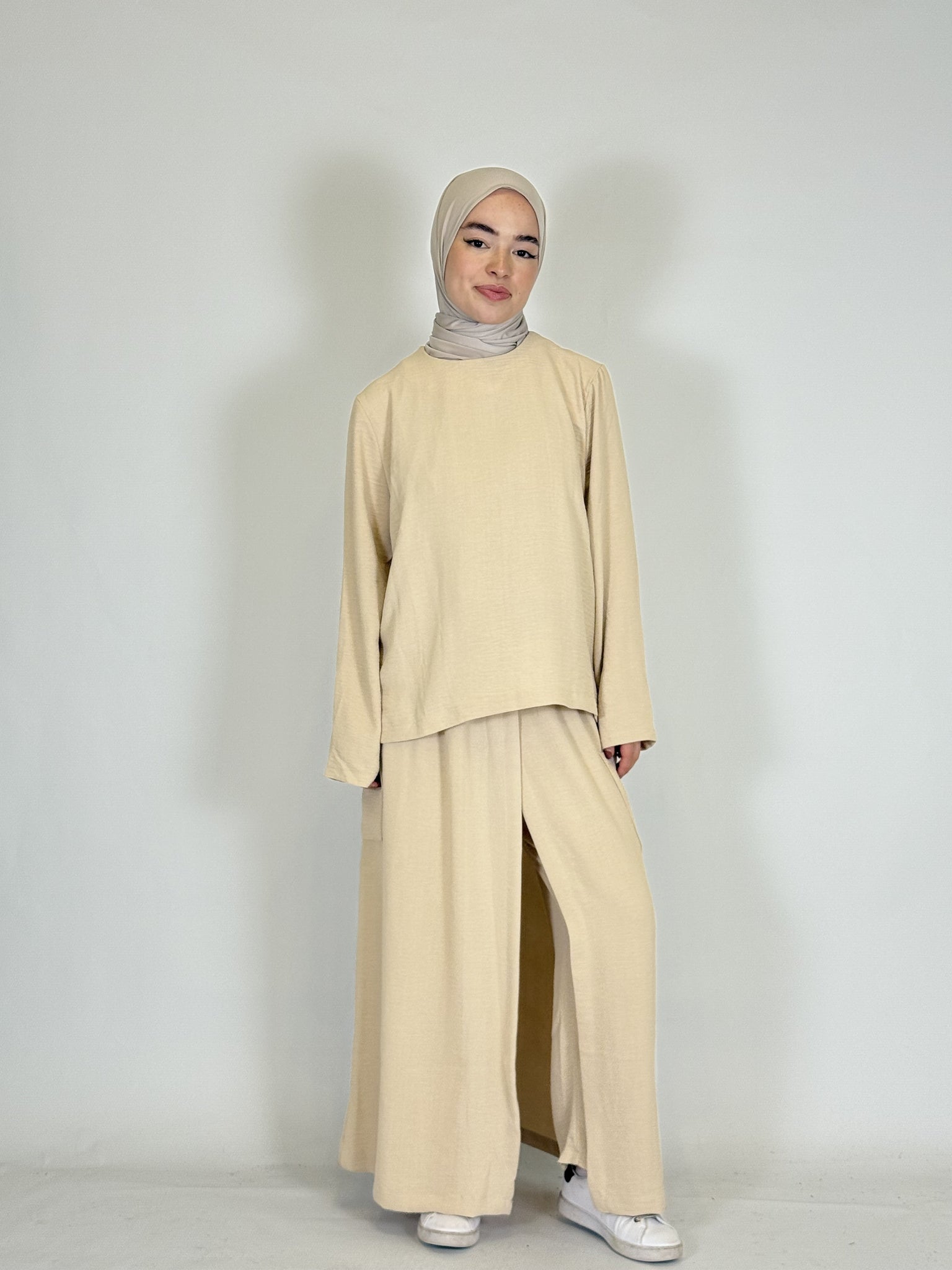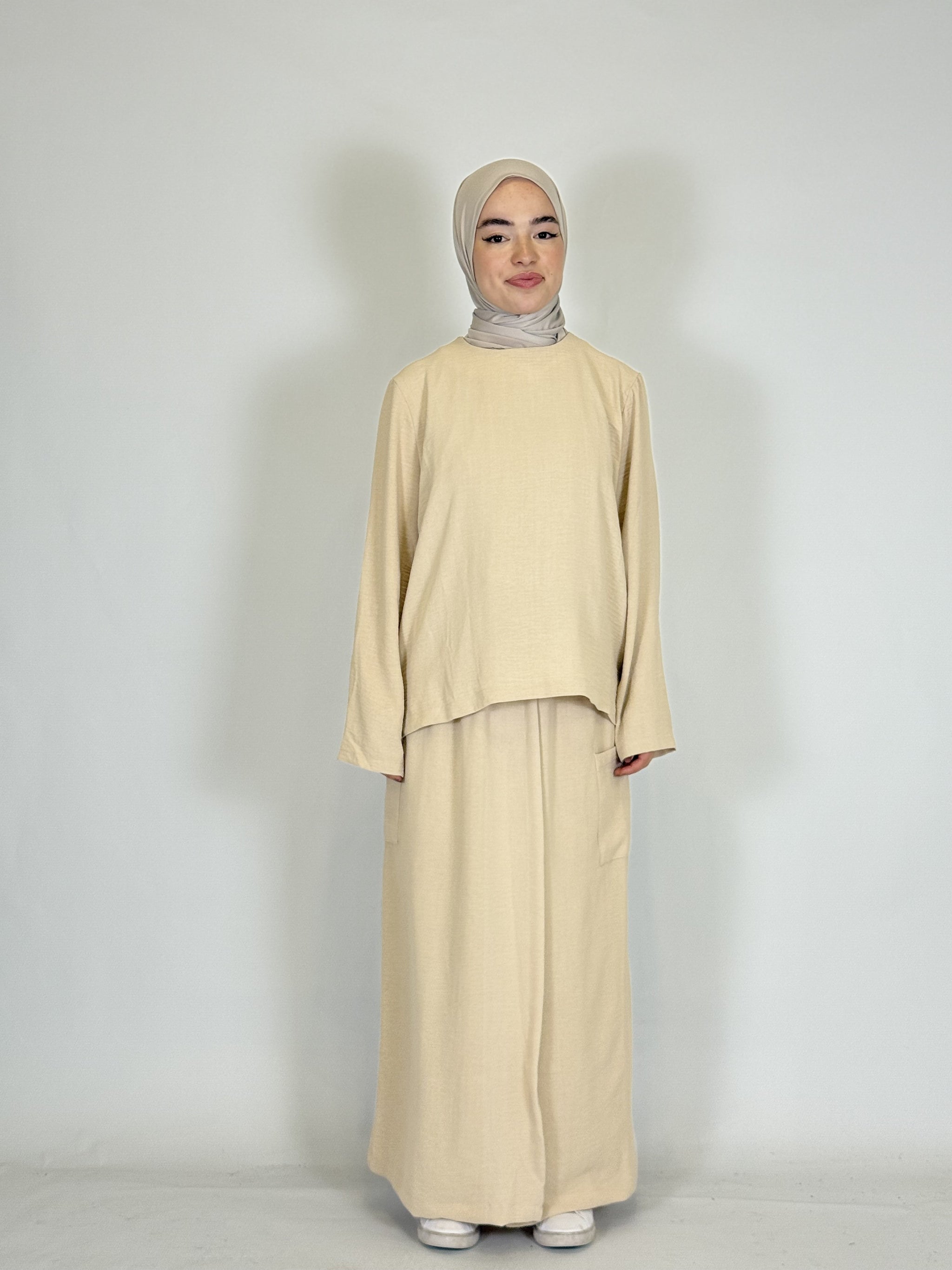Das lange Oberteil rundet den modesten Look perfekt ab.