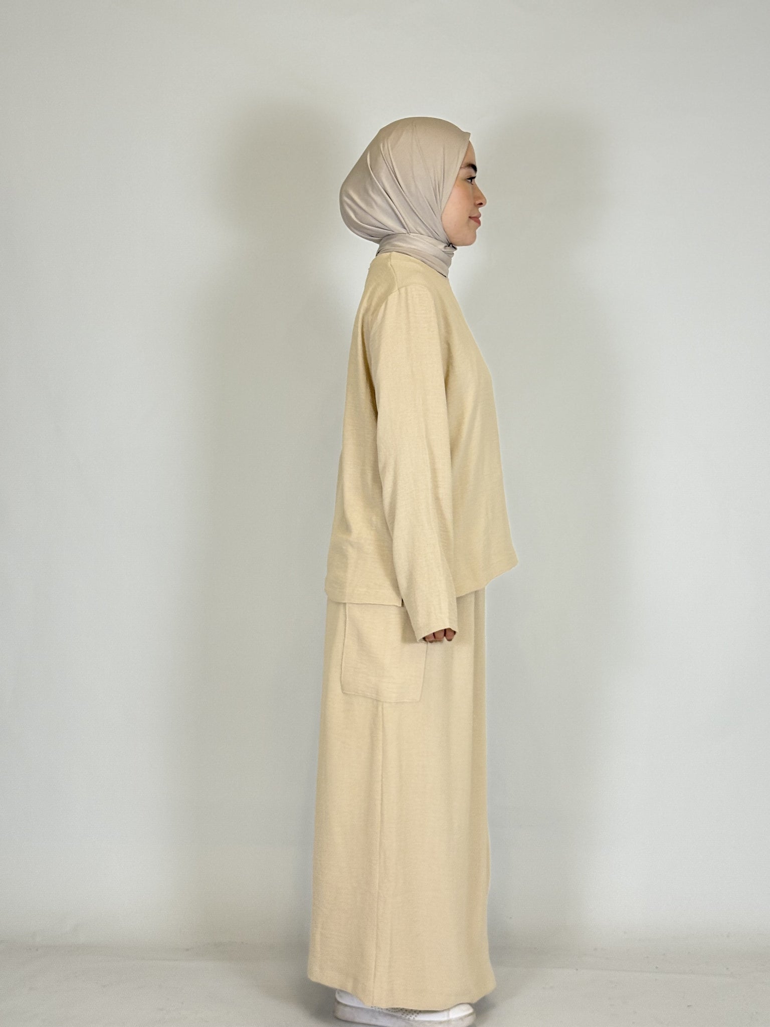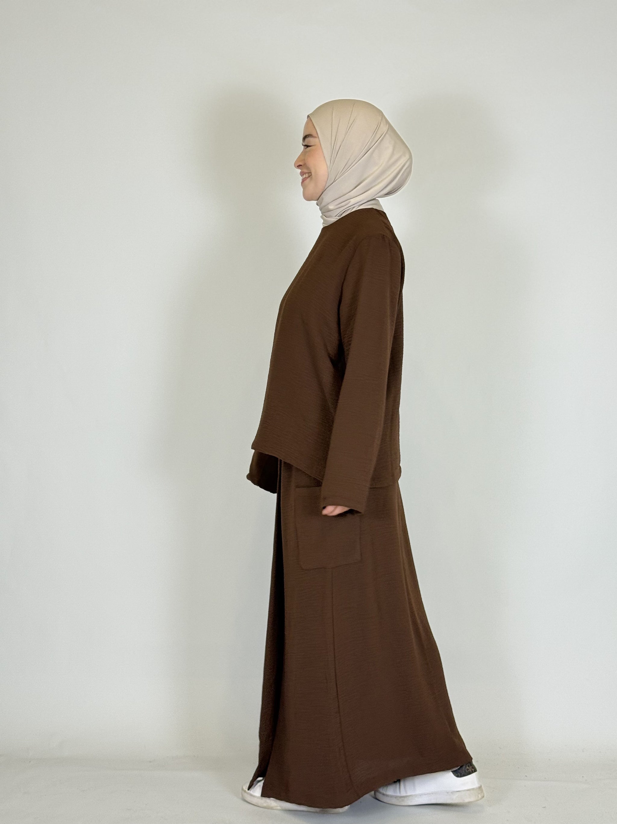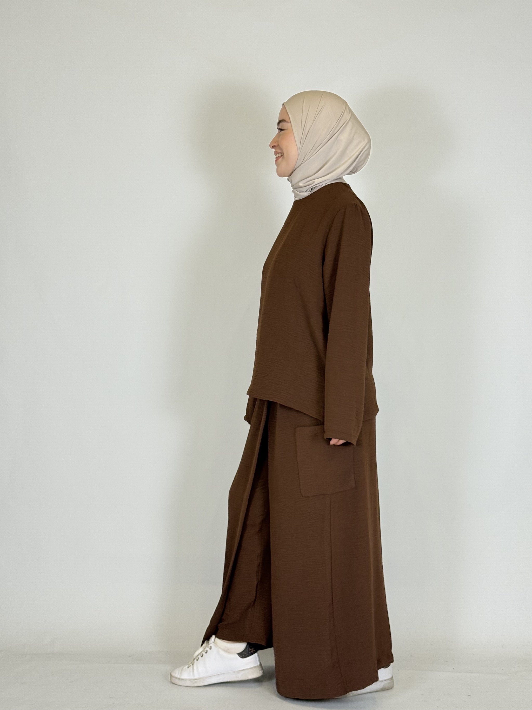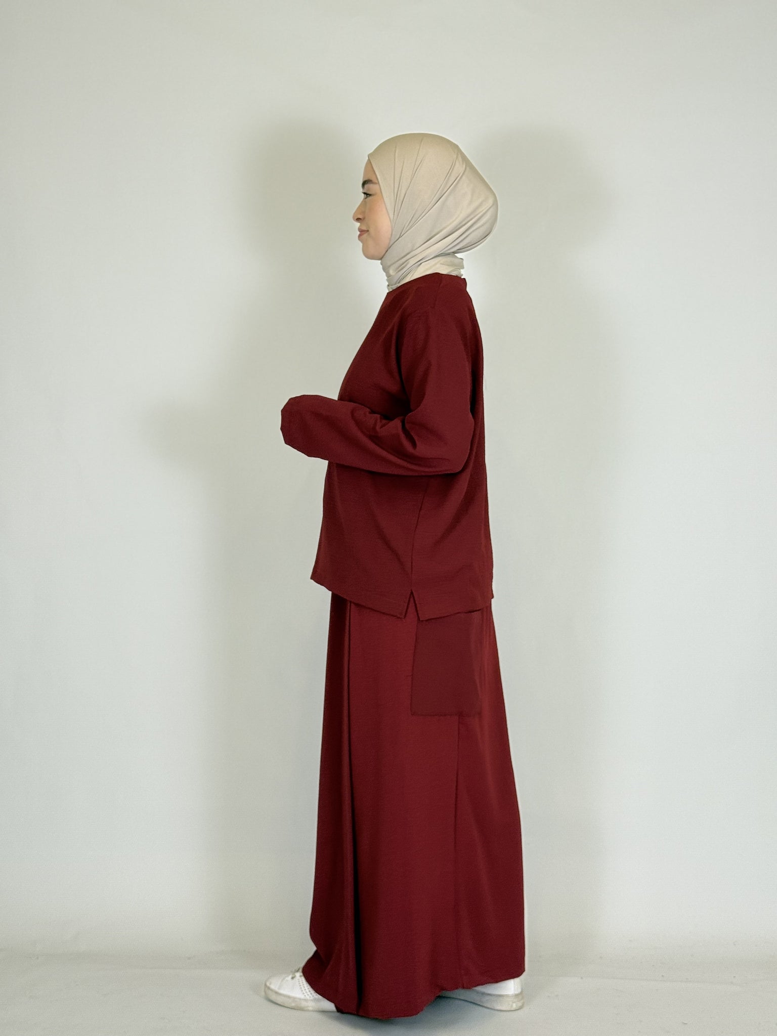 Das lange Oberteil rundet den modesten Look perfekt ab.
