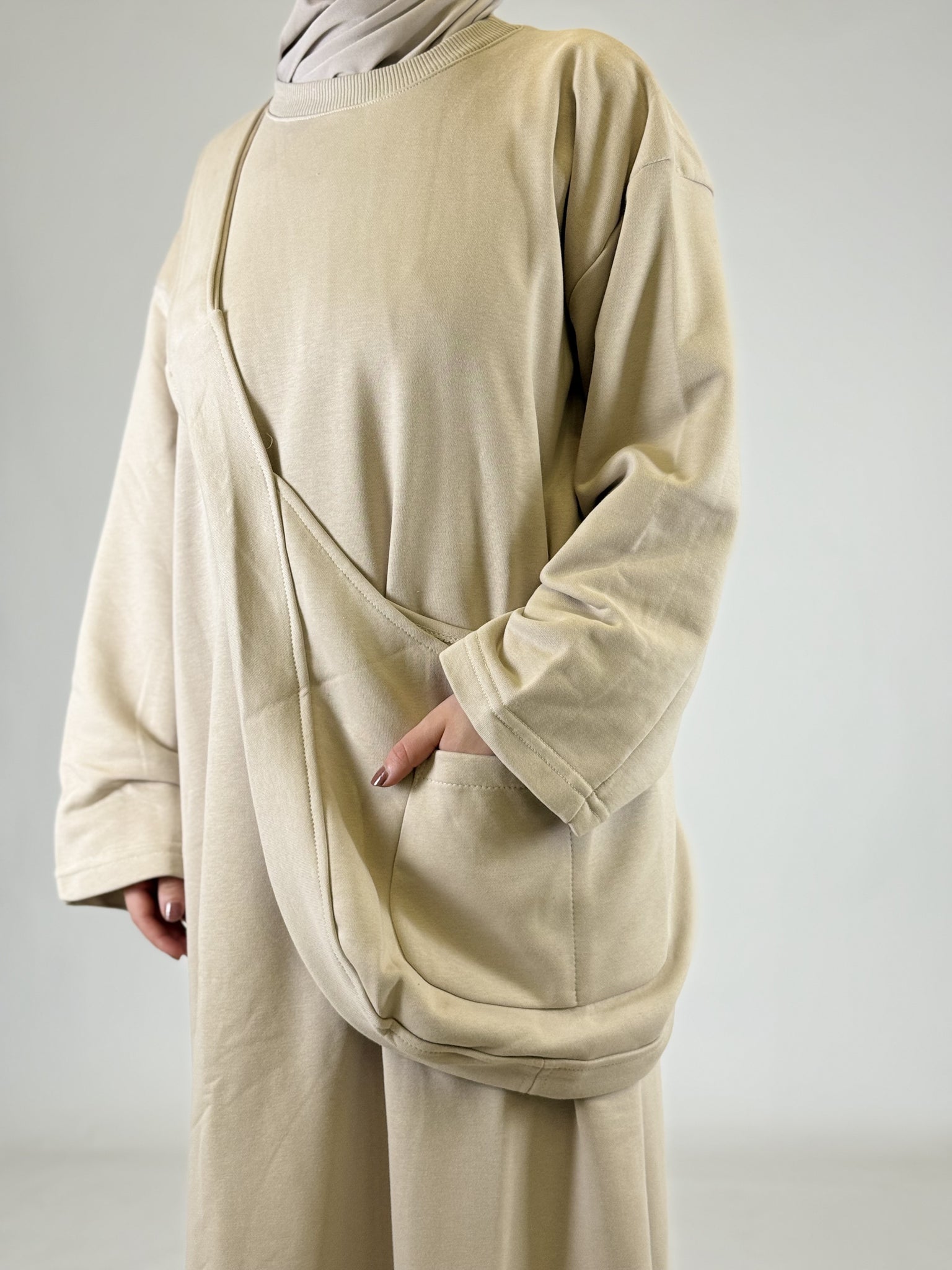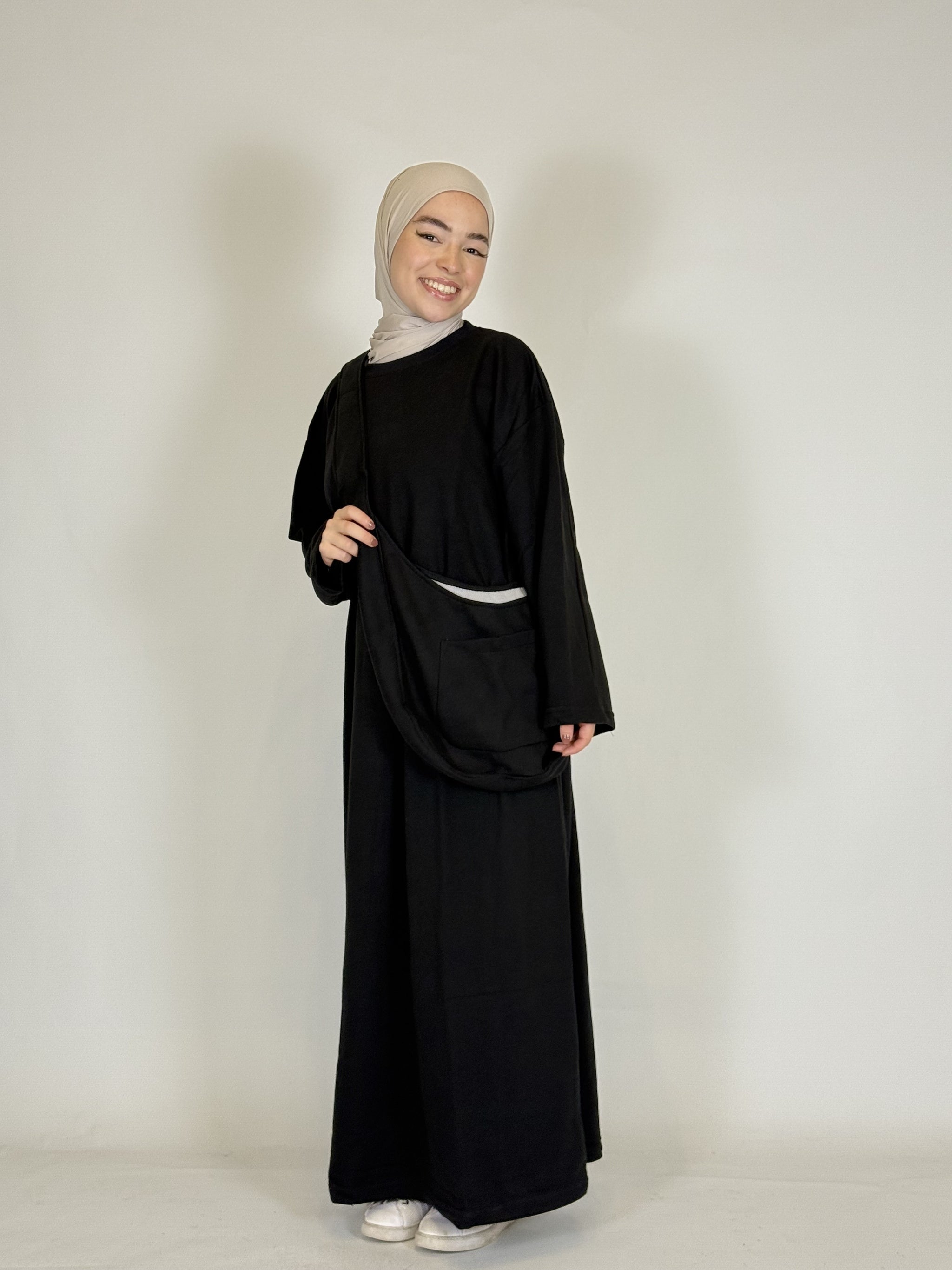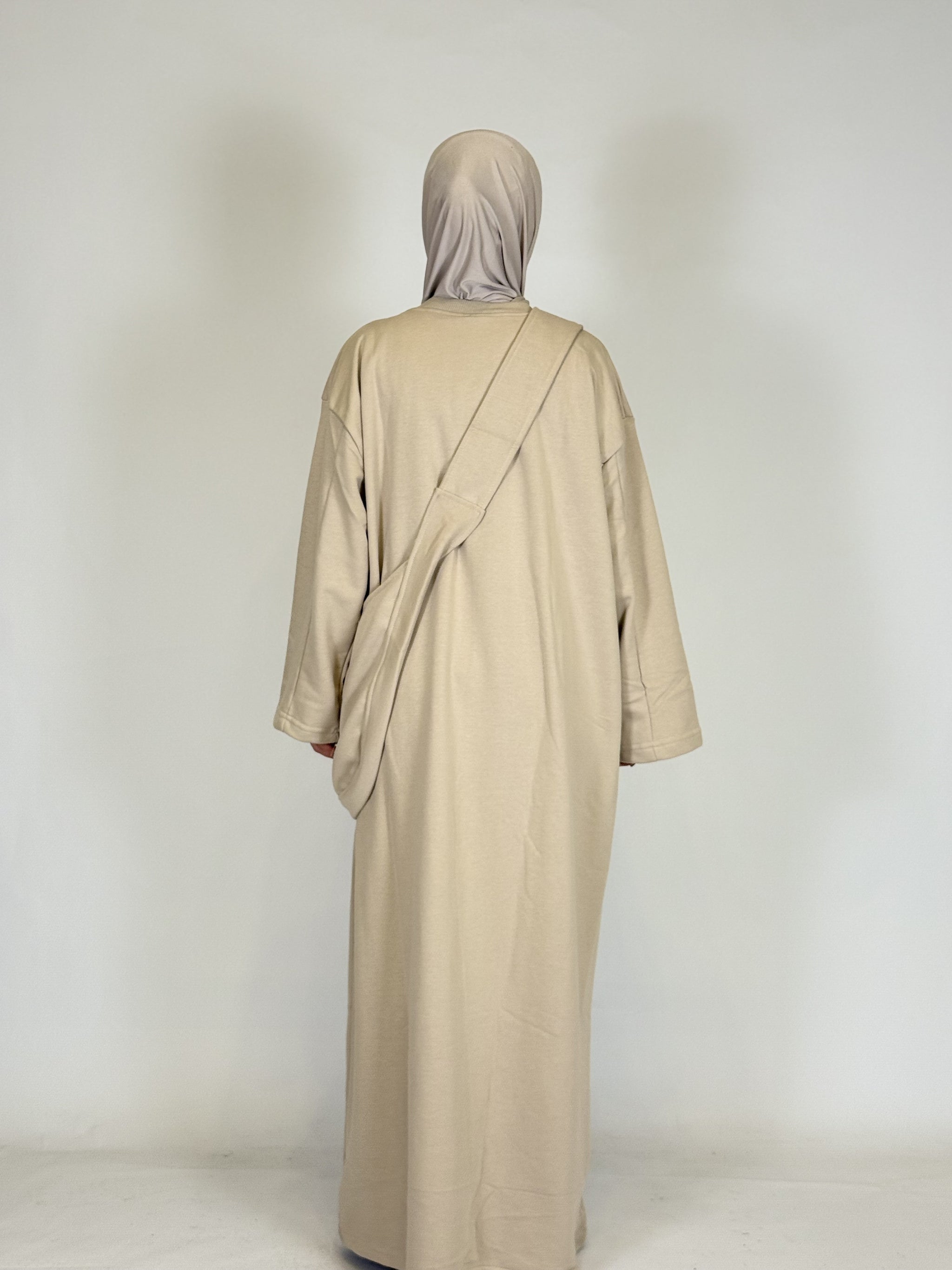 Diese Abaya ist etwas ganz Besonderes: Sie wird mit einer praktischen Umhängetasche aus dem gleichen Stoff geliefert – stilvoll und funktional zugleich.