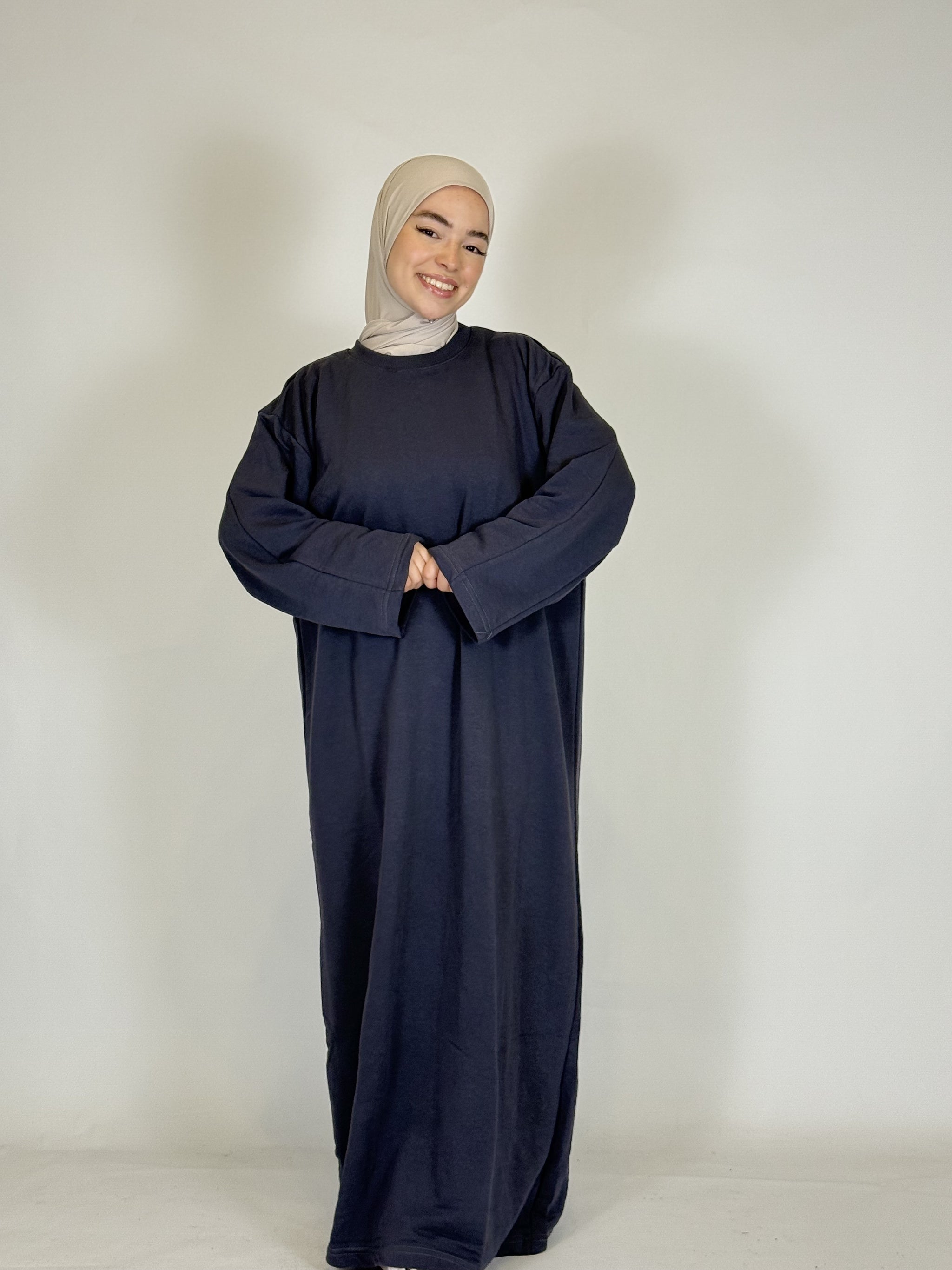 Die Abaya ist Einheitsgröße und passt sich angenehm dem Körper an.
