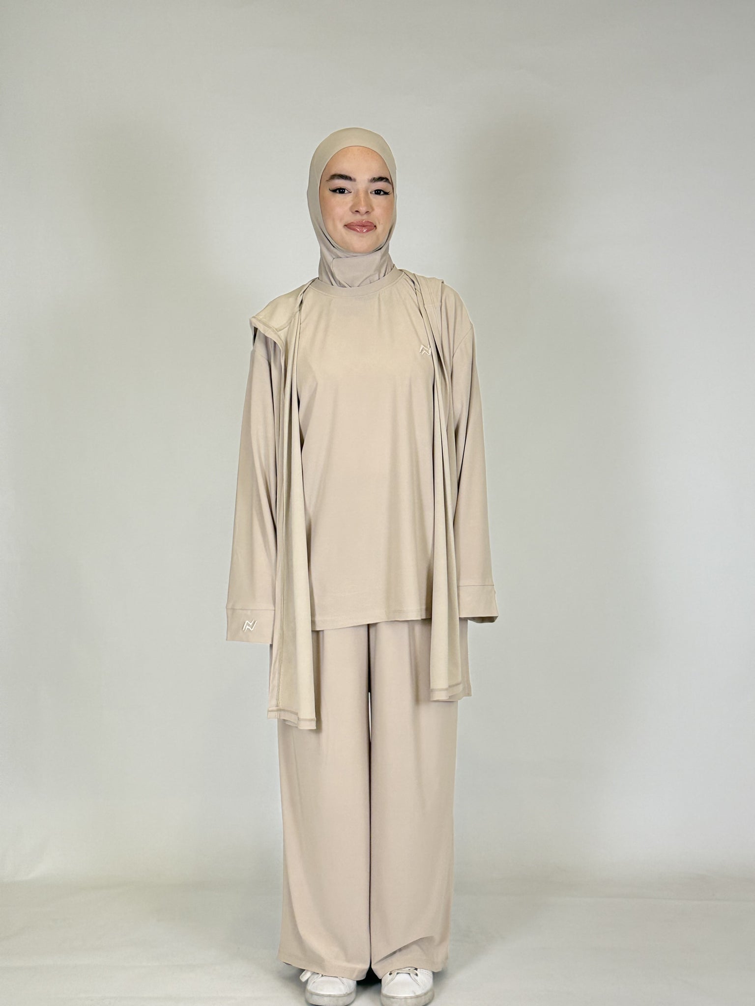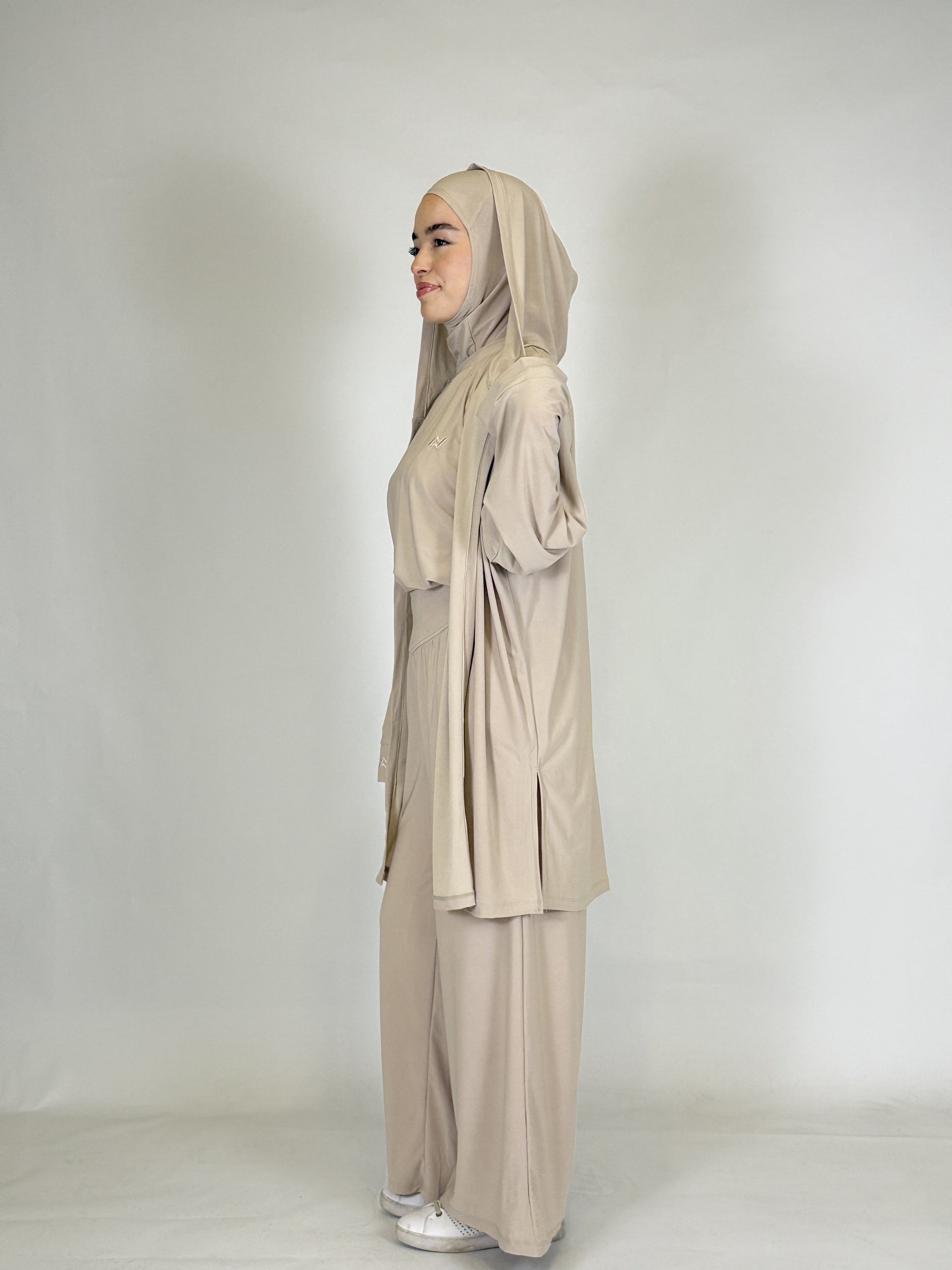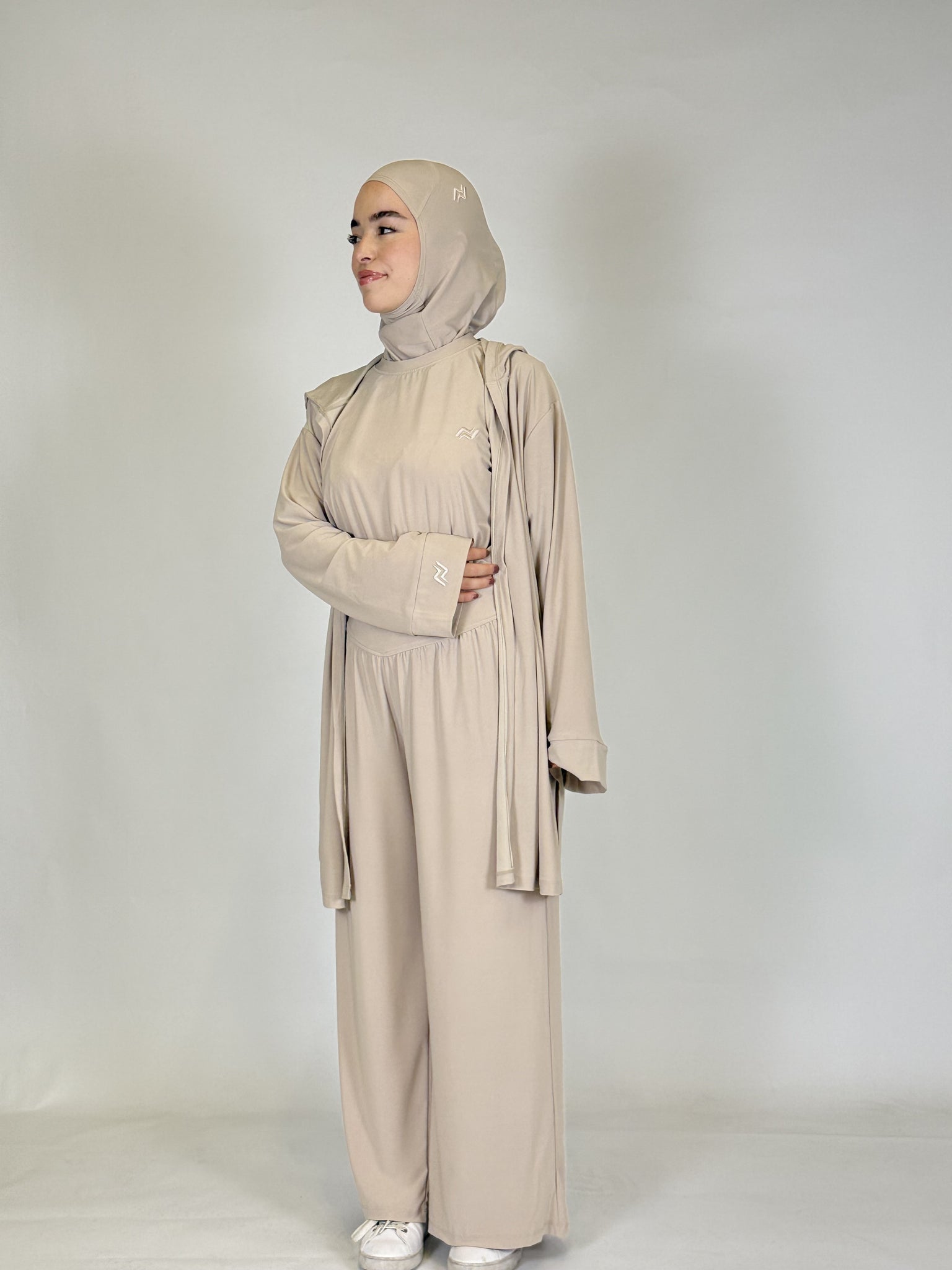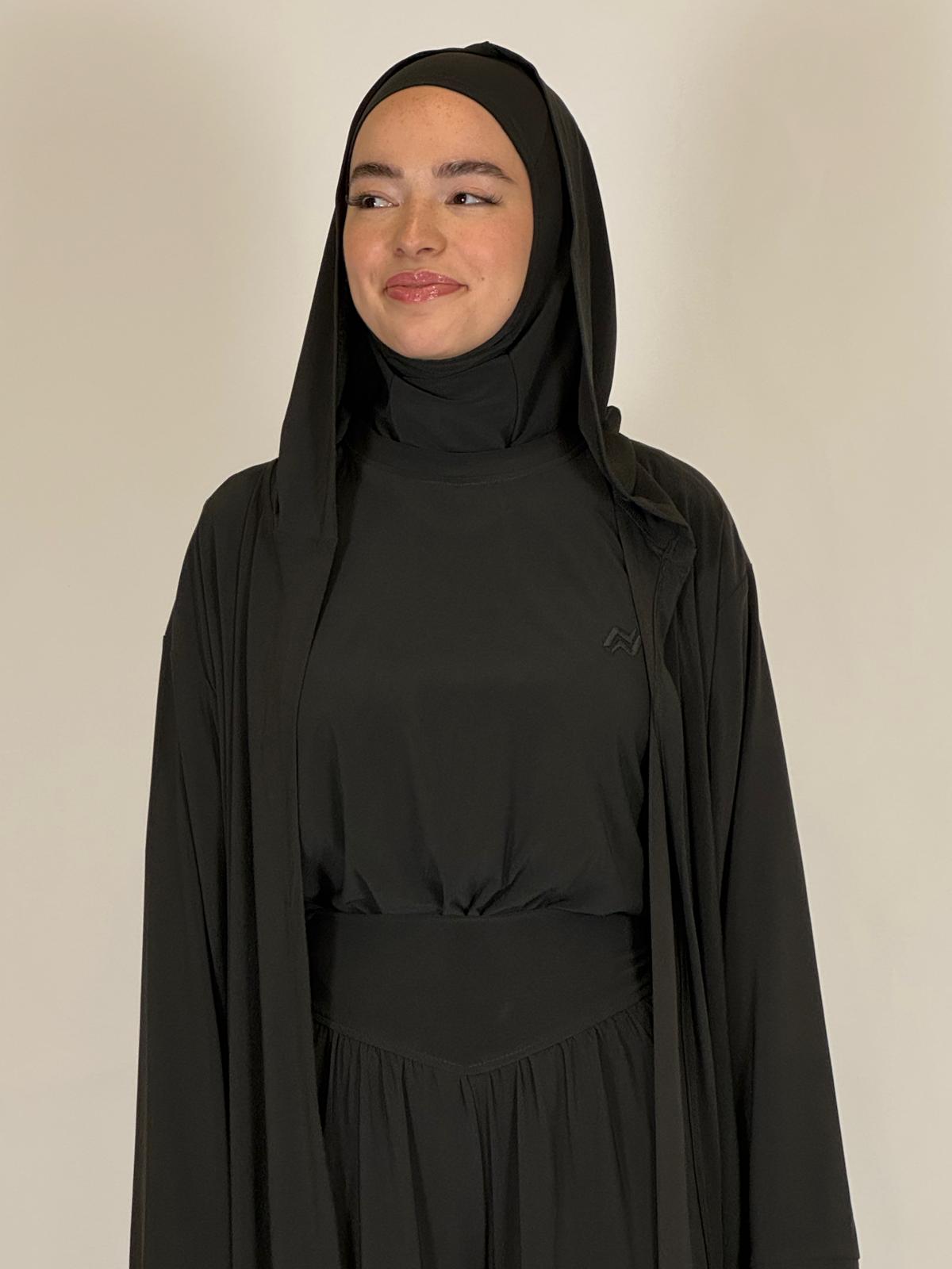 Dieses Set ist die ideale Alternative zum klassischen Abaya-Fit für Frauen, die Sport treiben und gleichzeitig lange, deckende Kleidung in erstklassiger Qualität tragen möchten.
