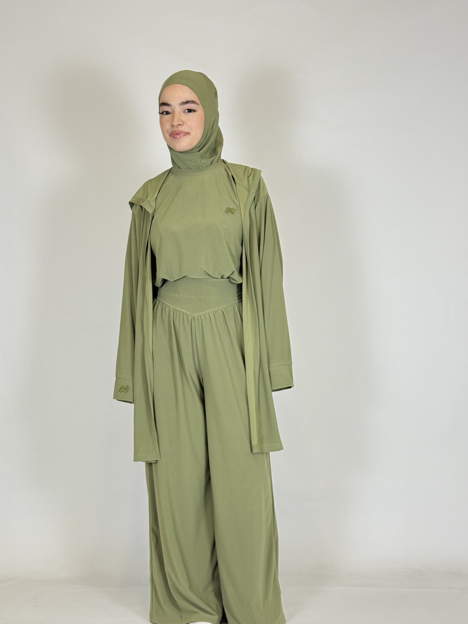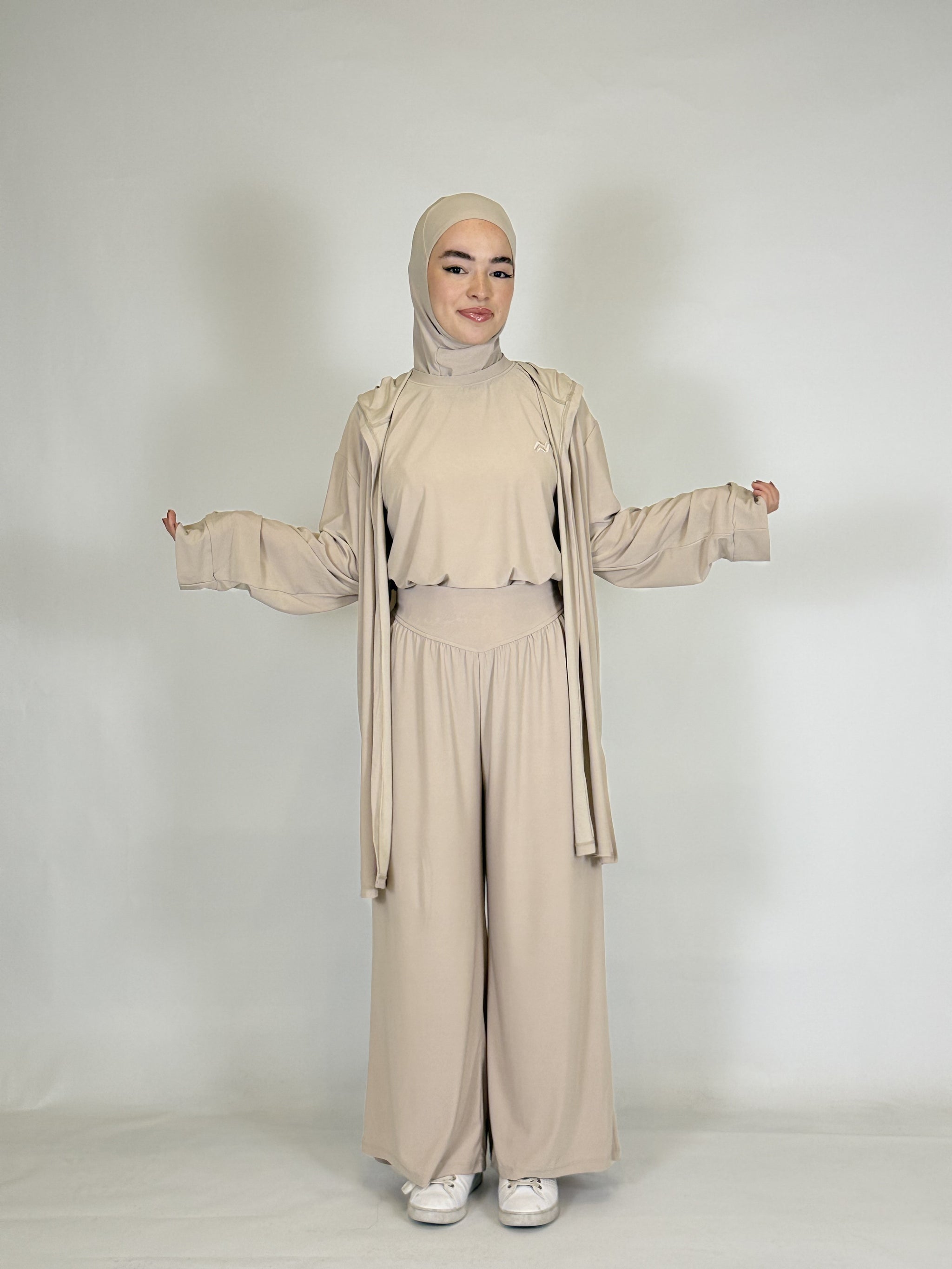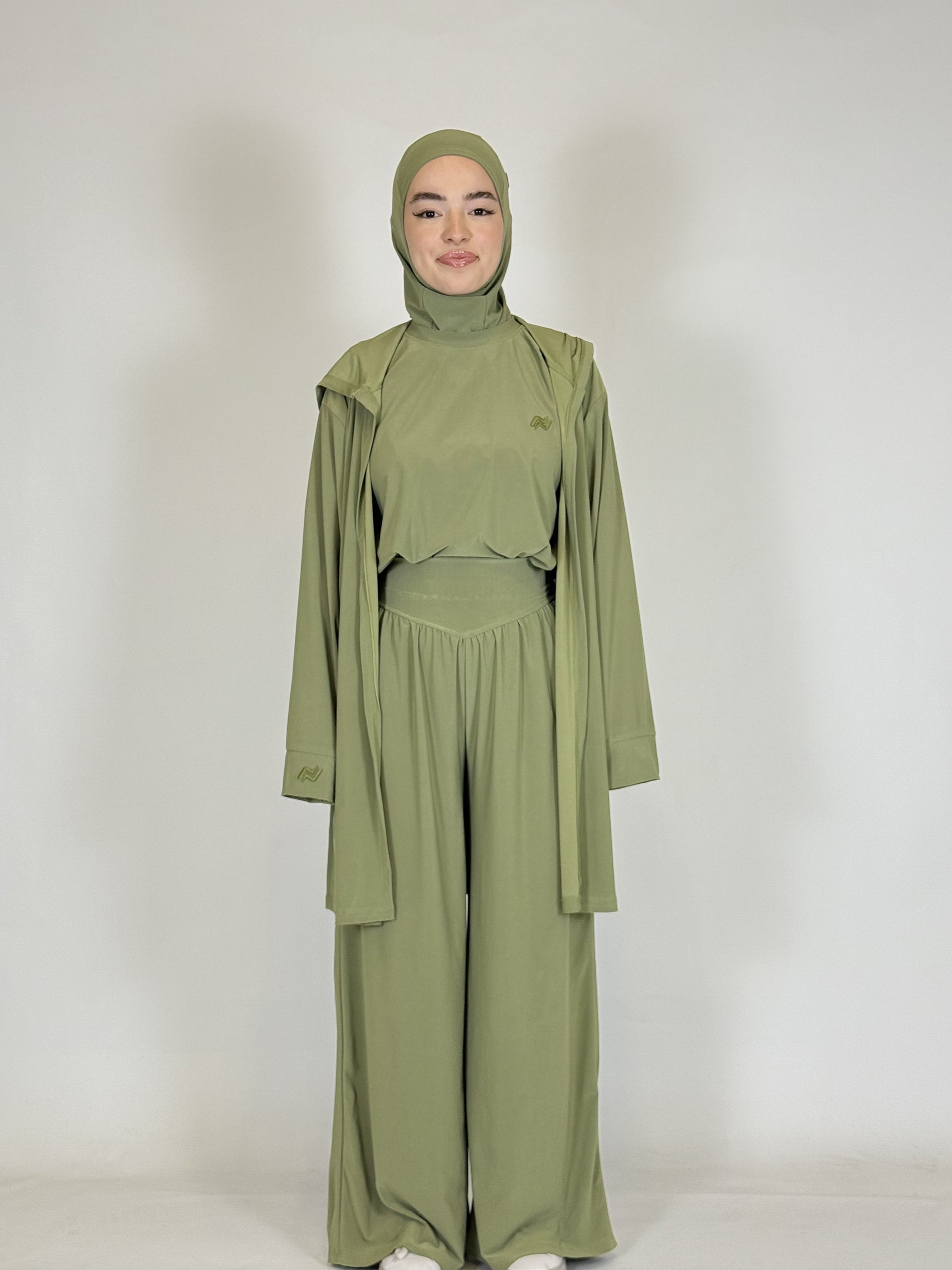 Dieses Set ist die ideale Alternative zum klassischen Abaya-Fit für Frauen, die Sport treiben und gleichzeitig lange, deckende Kleidung in erstklassiger Qualität tragen möchten.