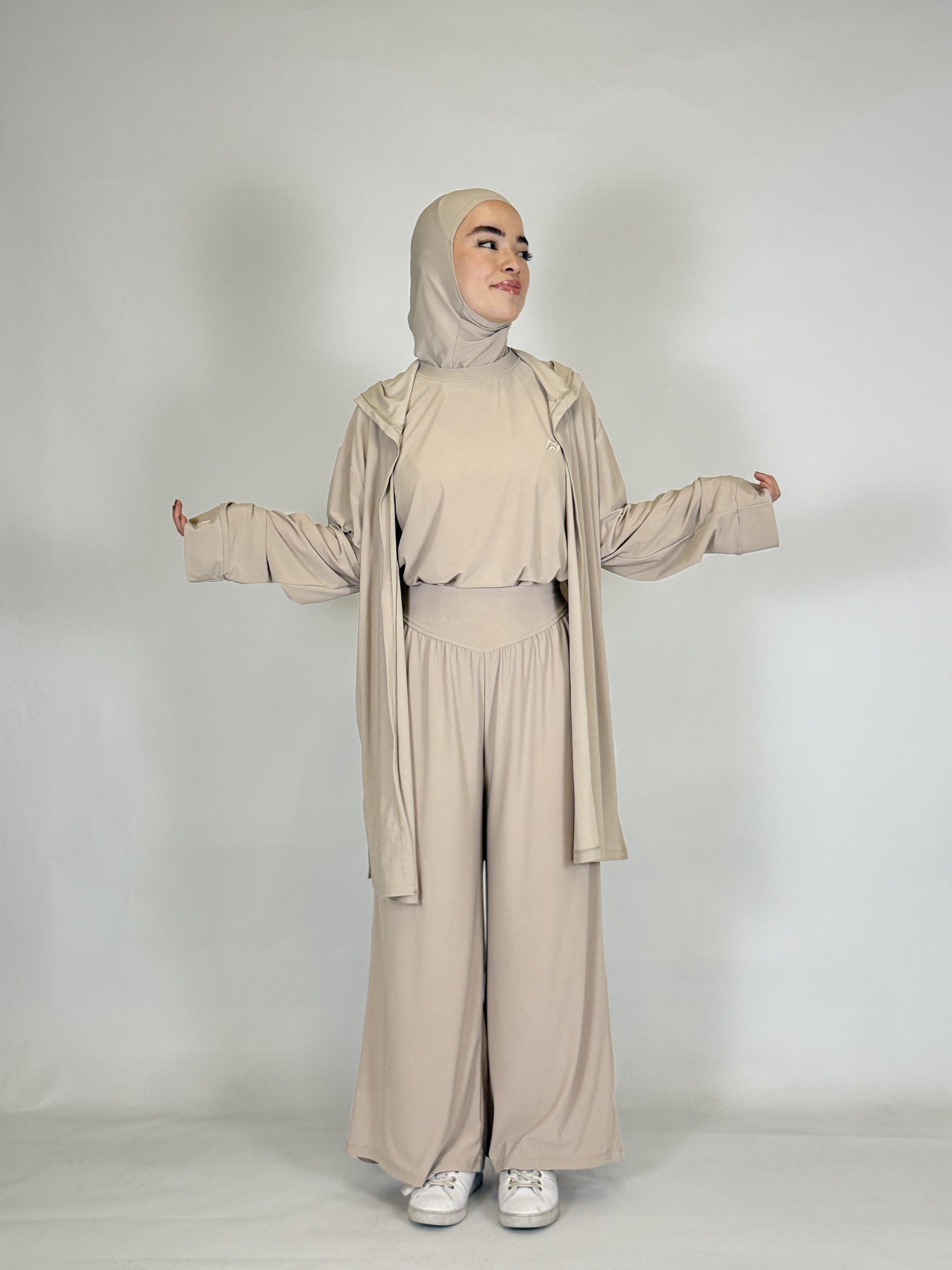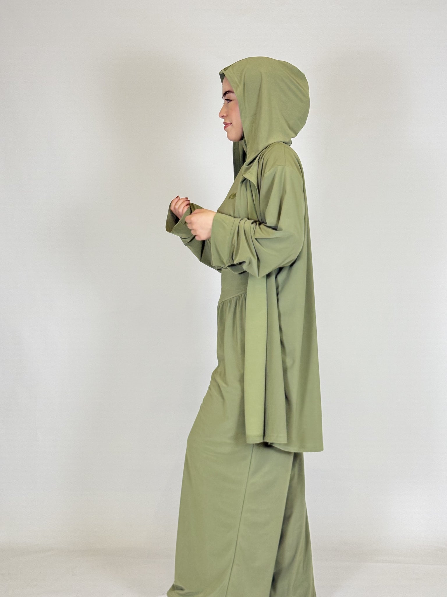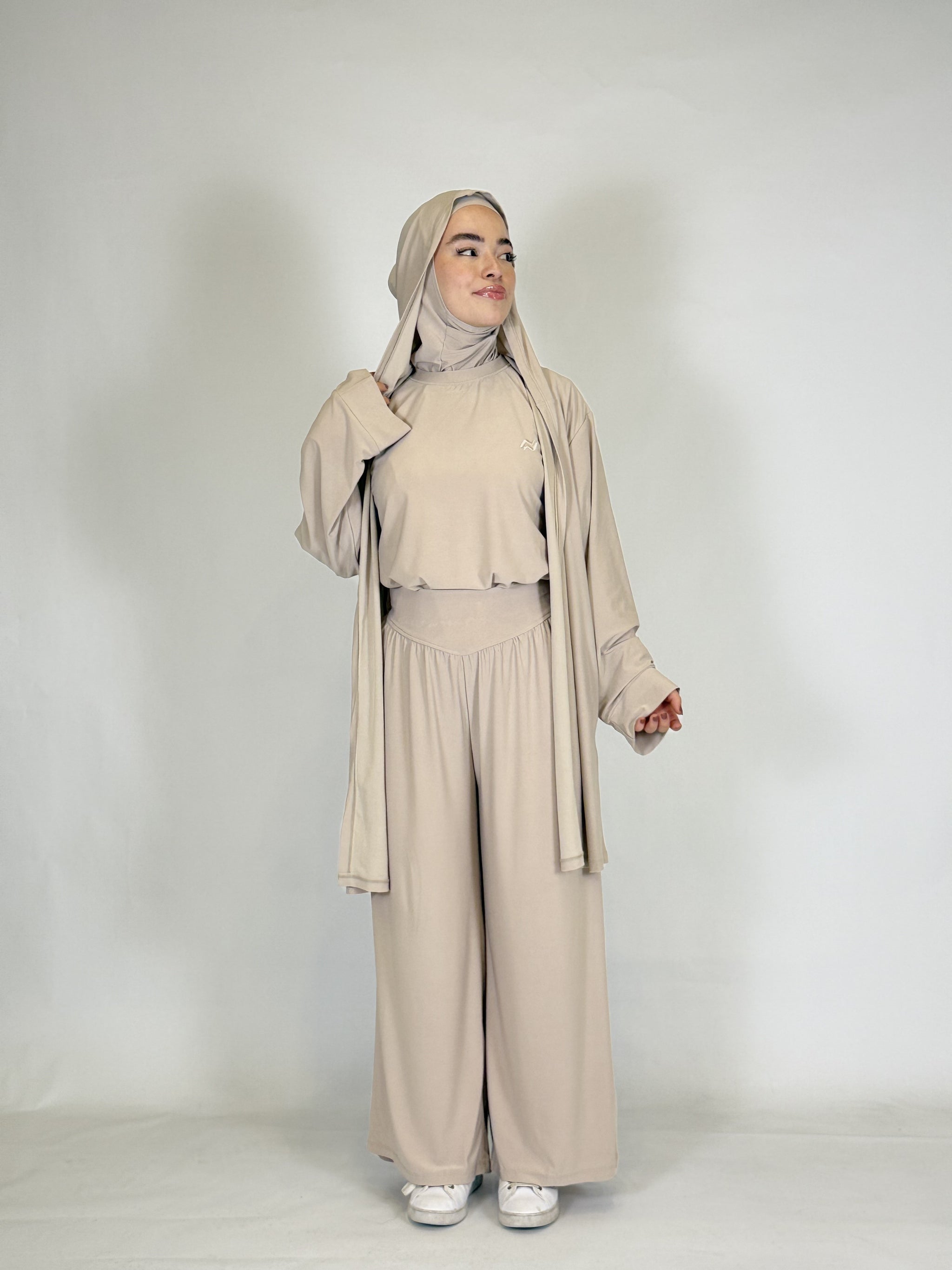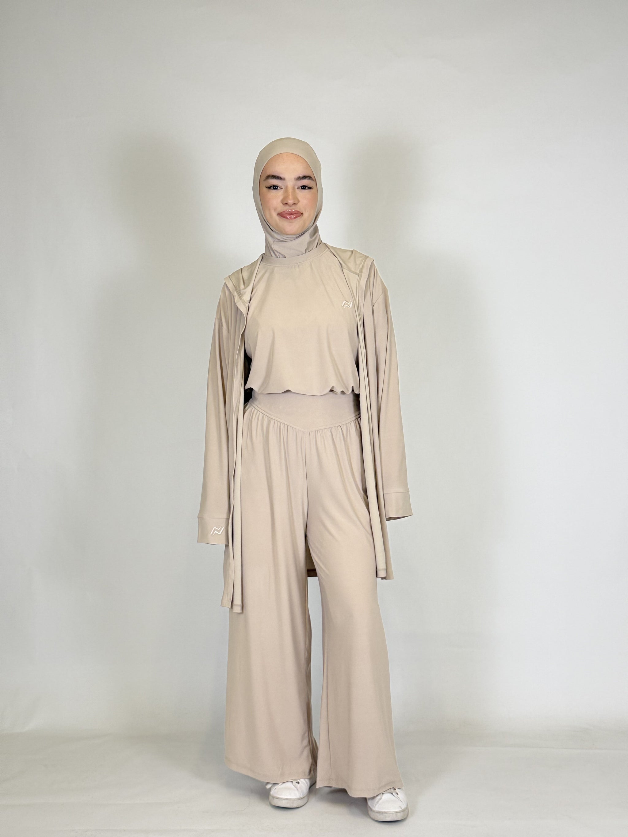 Dieses Set ist die ideale Alternative zum klassischen Abaya-Fit für Frauen, die Sport treiben und gleichzeitig lange, deckende Kleidung in erstklassiger Qualität tragen möchten.