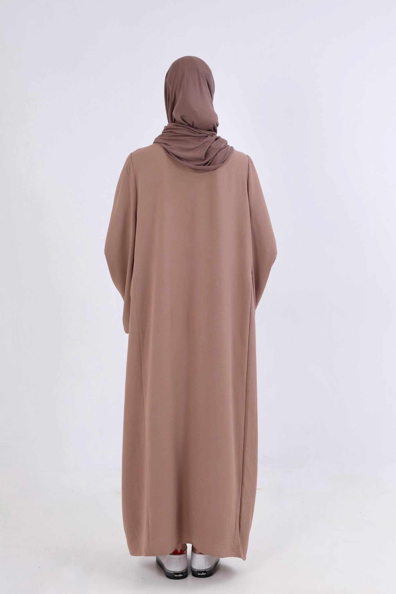 Gefertigt ist die Abaya aus Jazz (Ayrobin) Stoff mit einem hochwertigen Anteil aus 100 % Polyester.