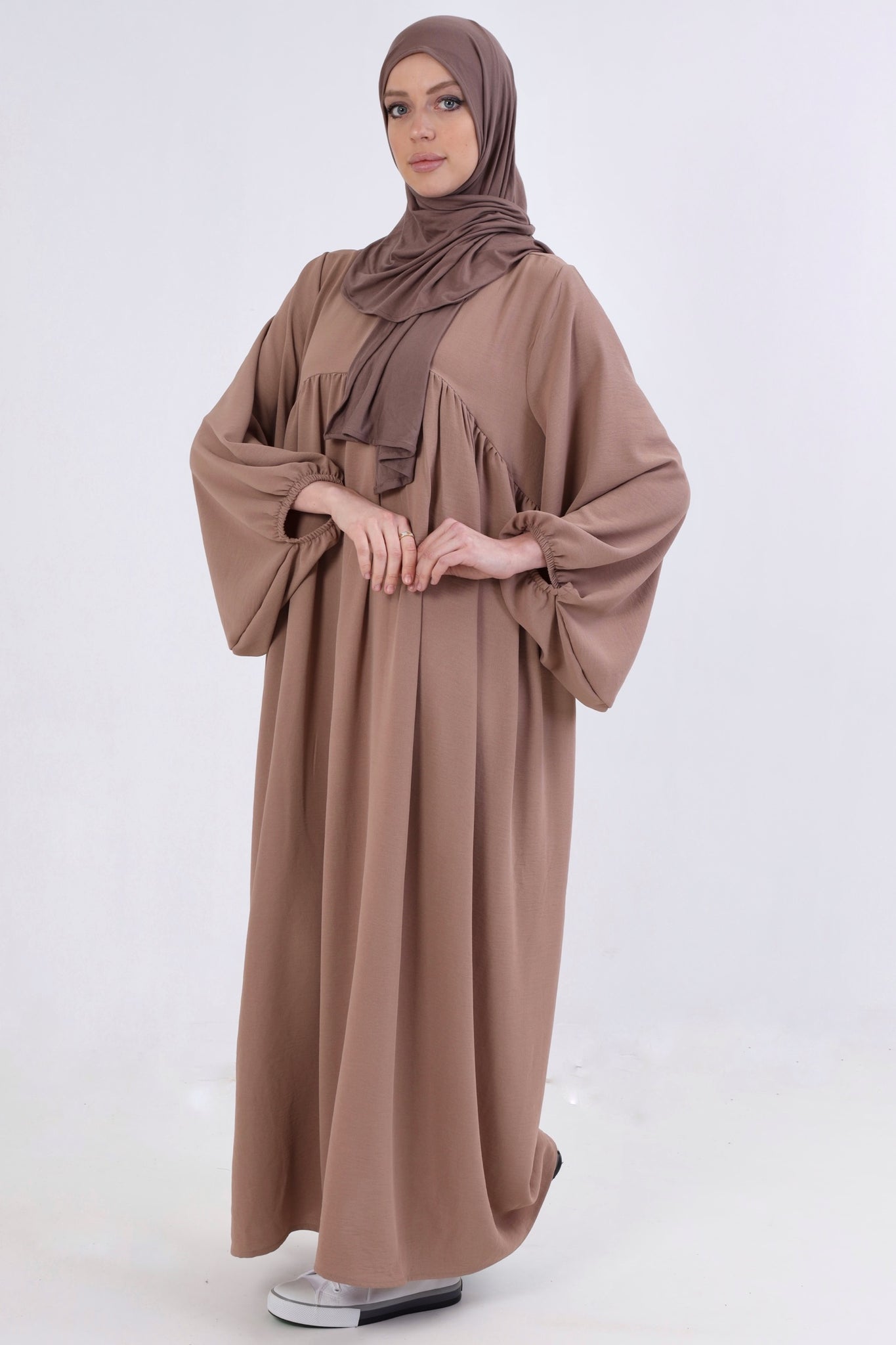 Die Abaya ist extra breit geschnitten und eignet sich auch für Plus-Size-Figuren.