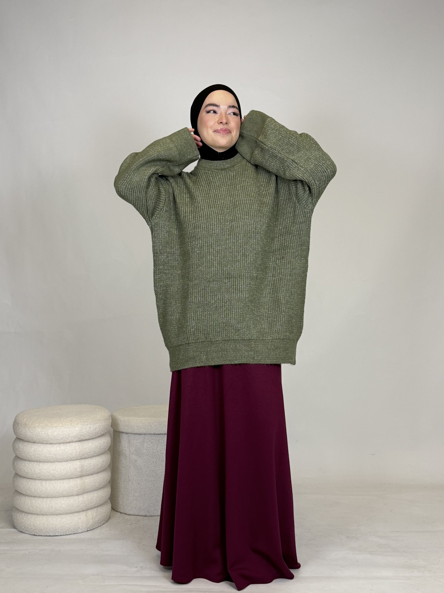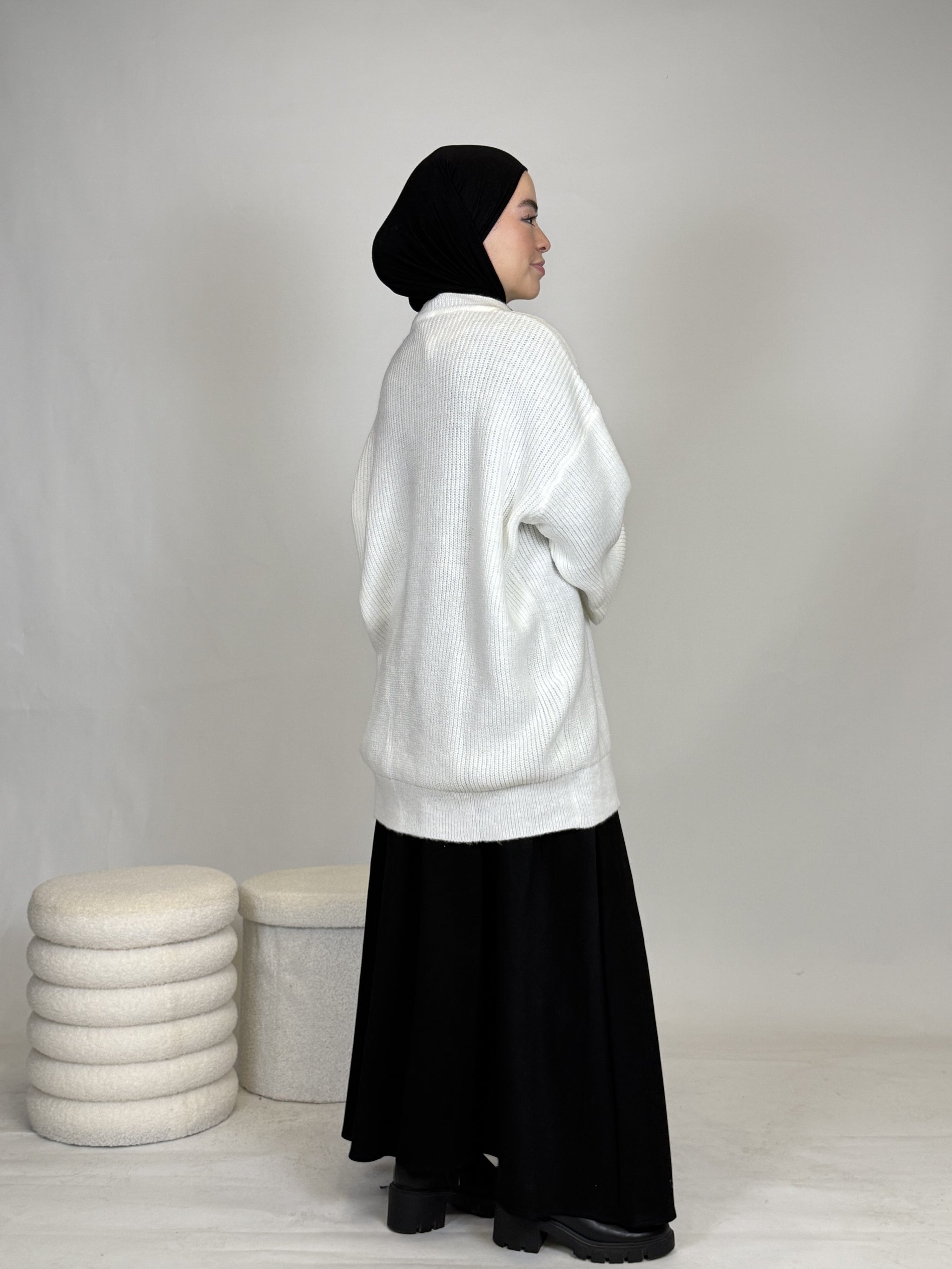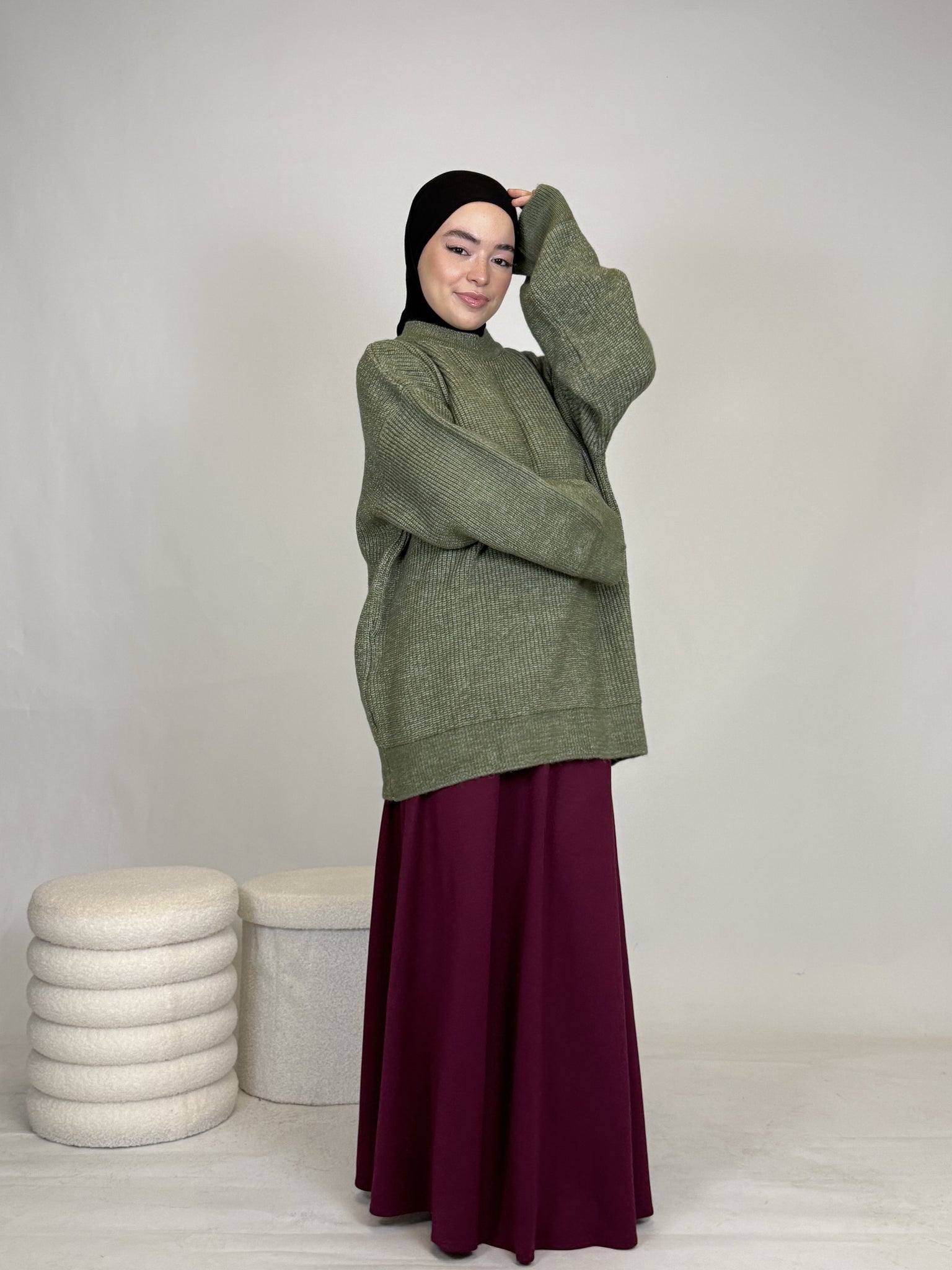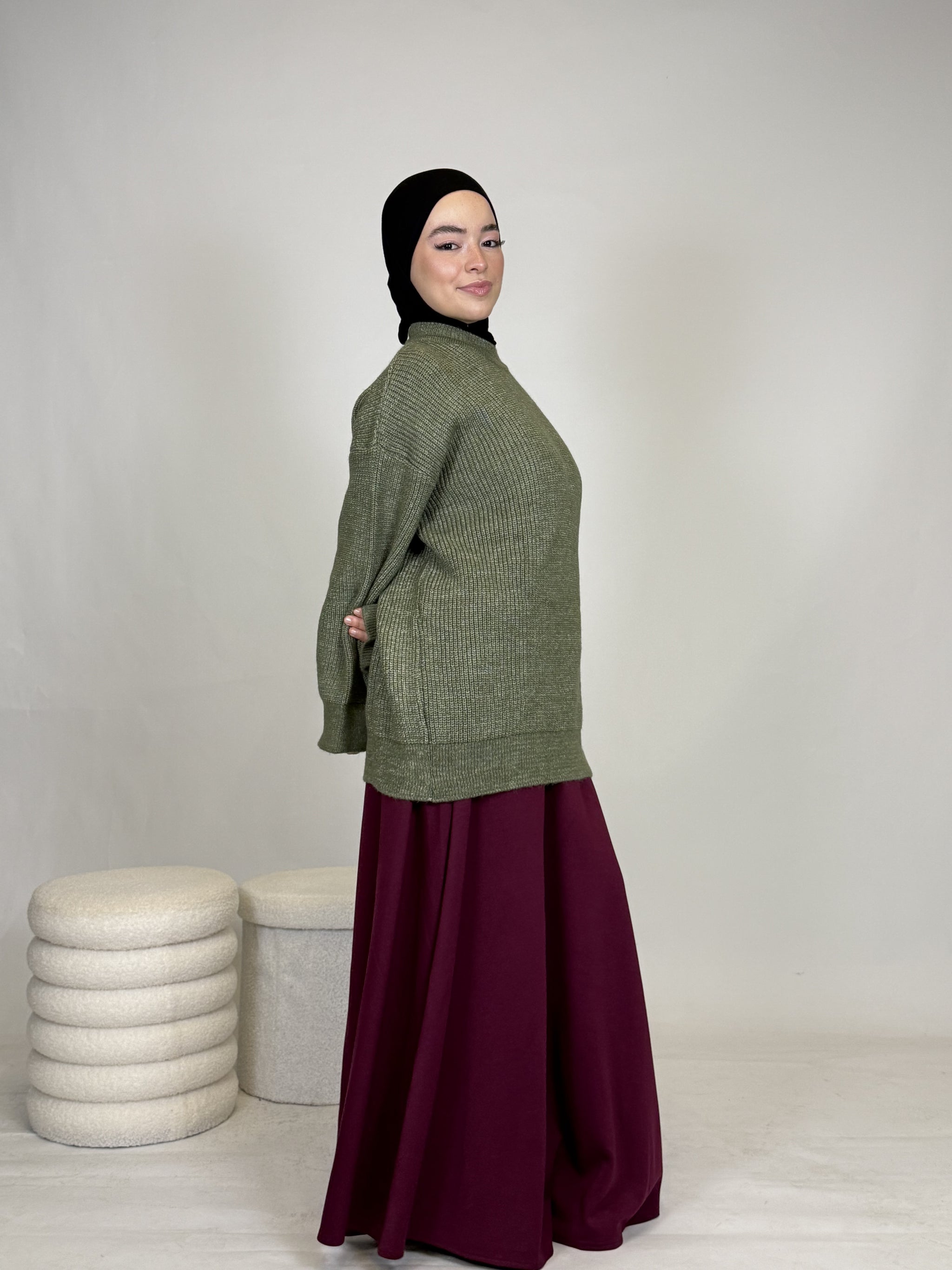 Dank seines vielseitigen Designs lässt sich das Oberteil mühelos kombinieren: lässig mit einer Hose oder elegant mit einem Rock, wie auf dem Bild. Ob casual, chic oder cozy, dieses Teil passt sich deinem Style an.