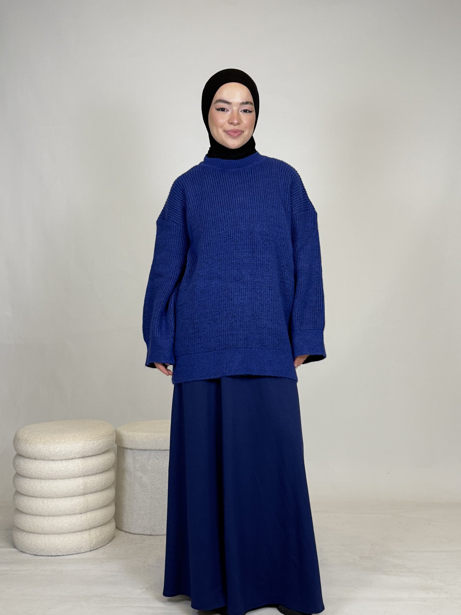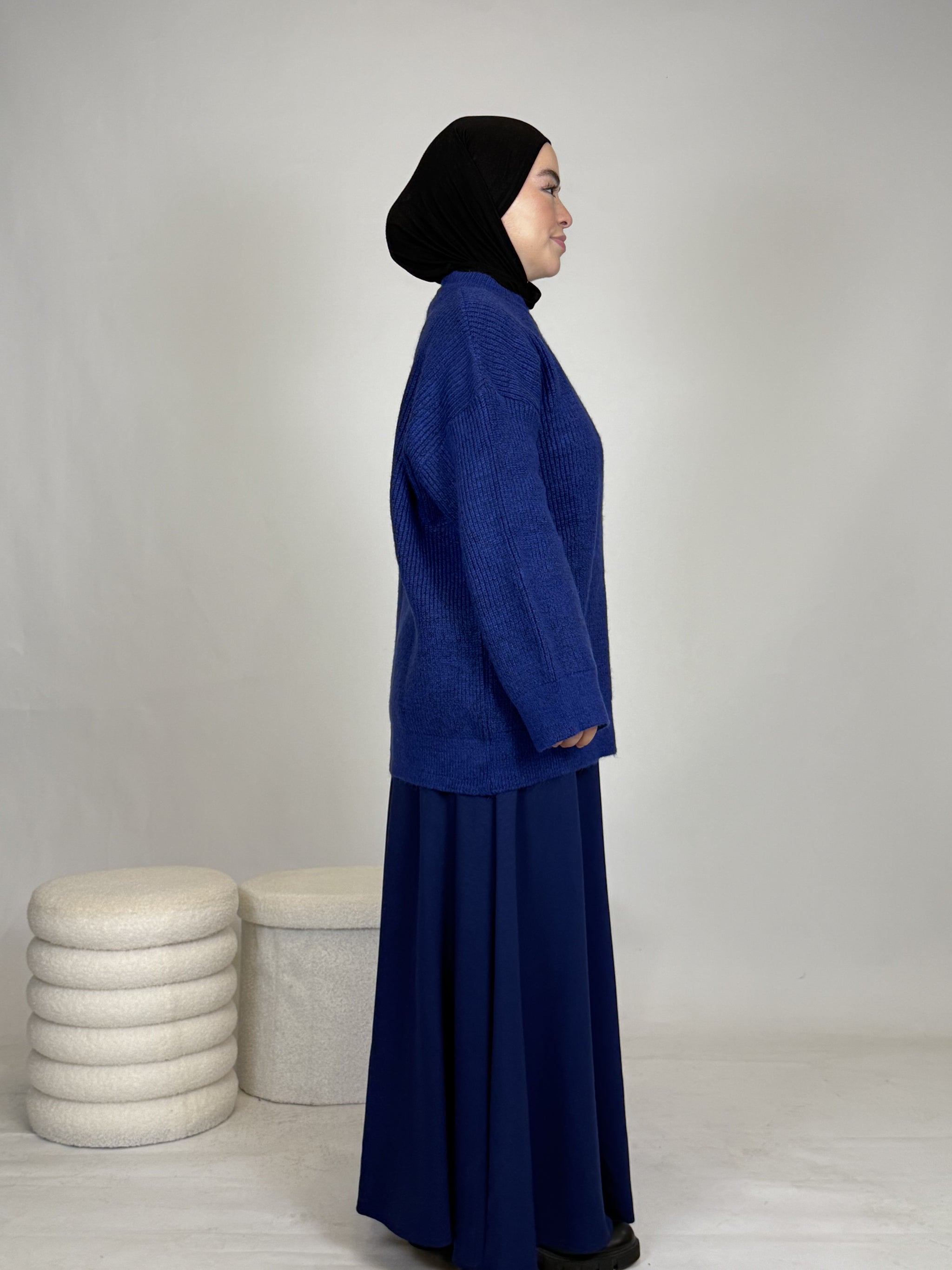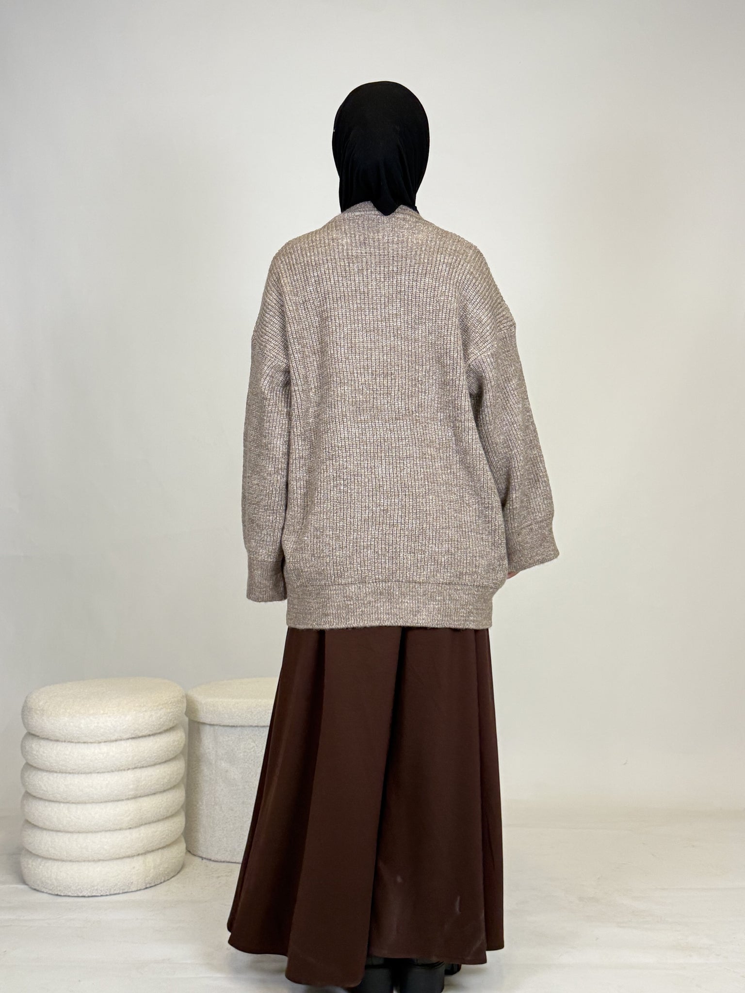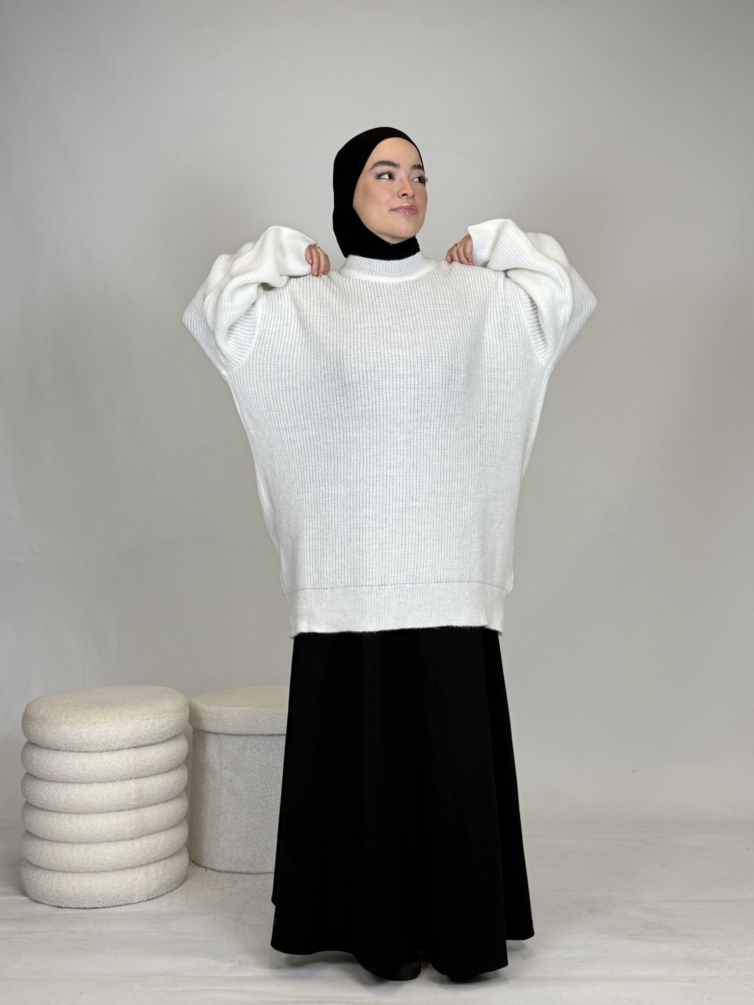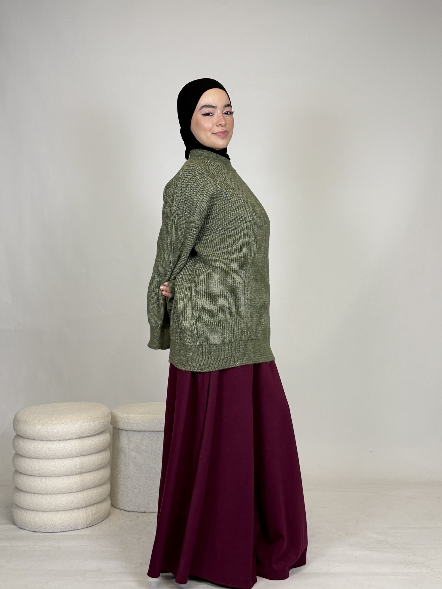 Dank seines vielseitigen Designs lässt sich das Oberteil mühelos kombinieren: lässig mit einer Hose oder elegant mit einem Rock, wie auf dem Bild. Ob casual, chic oder cozy, dieses Teil passt sich deinem Style an.