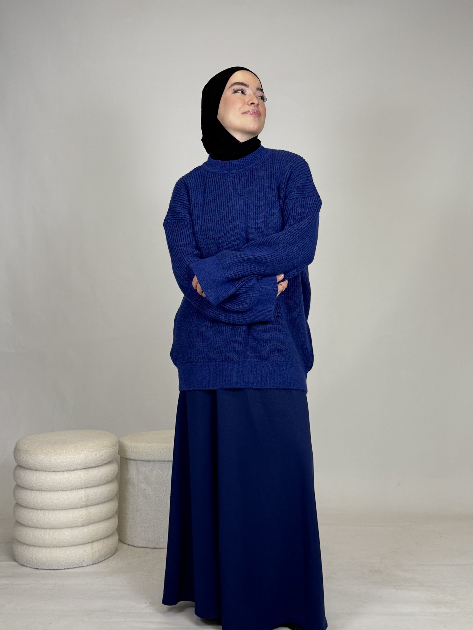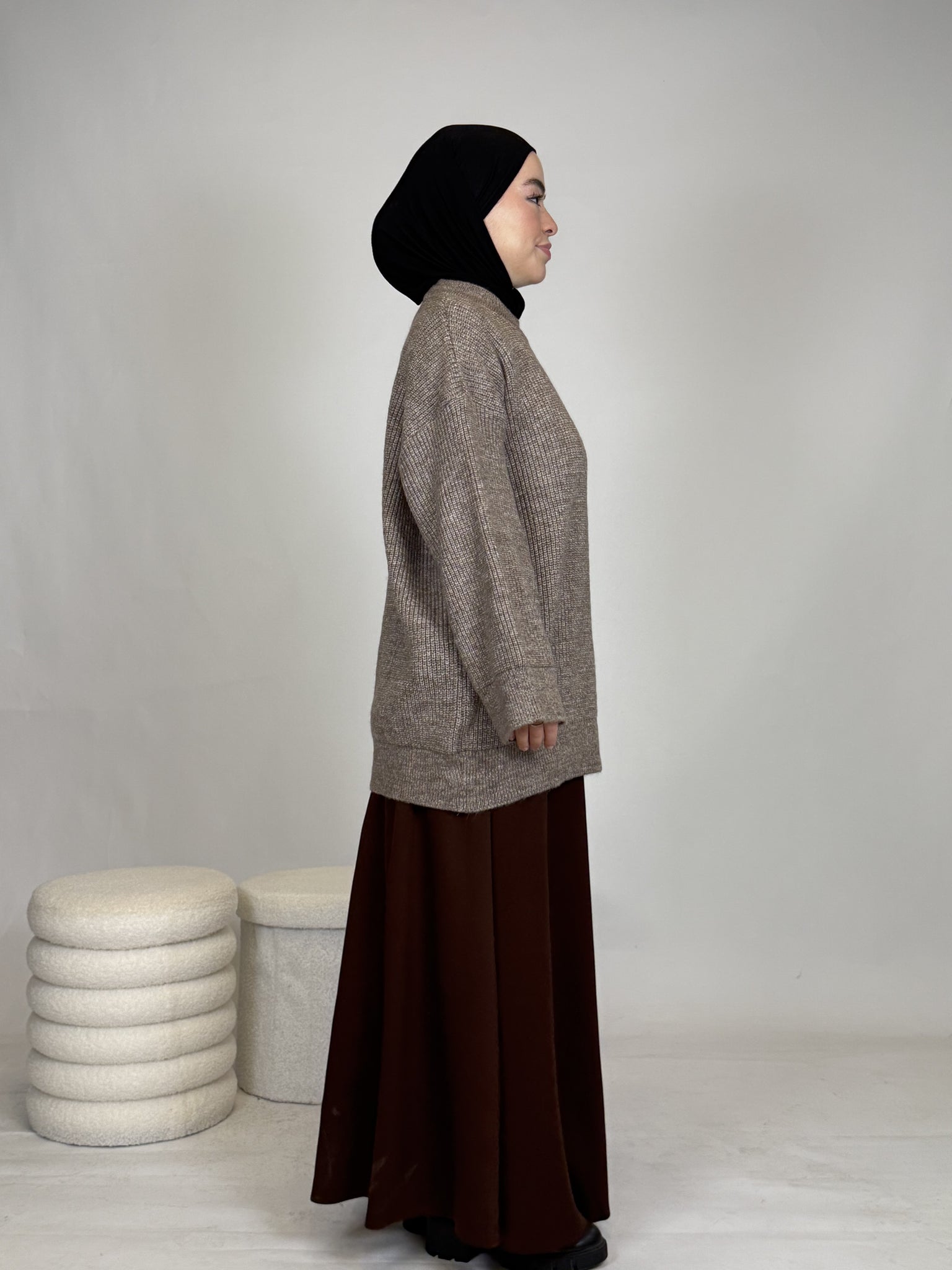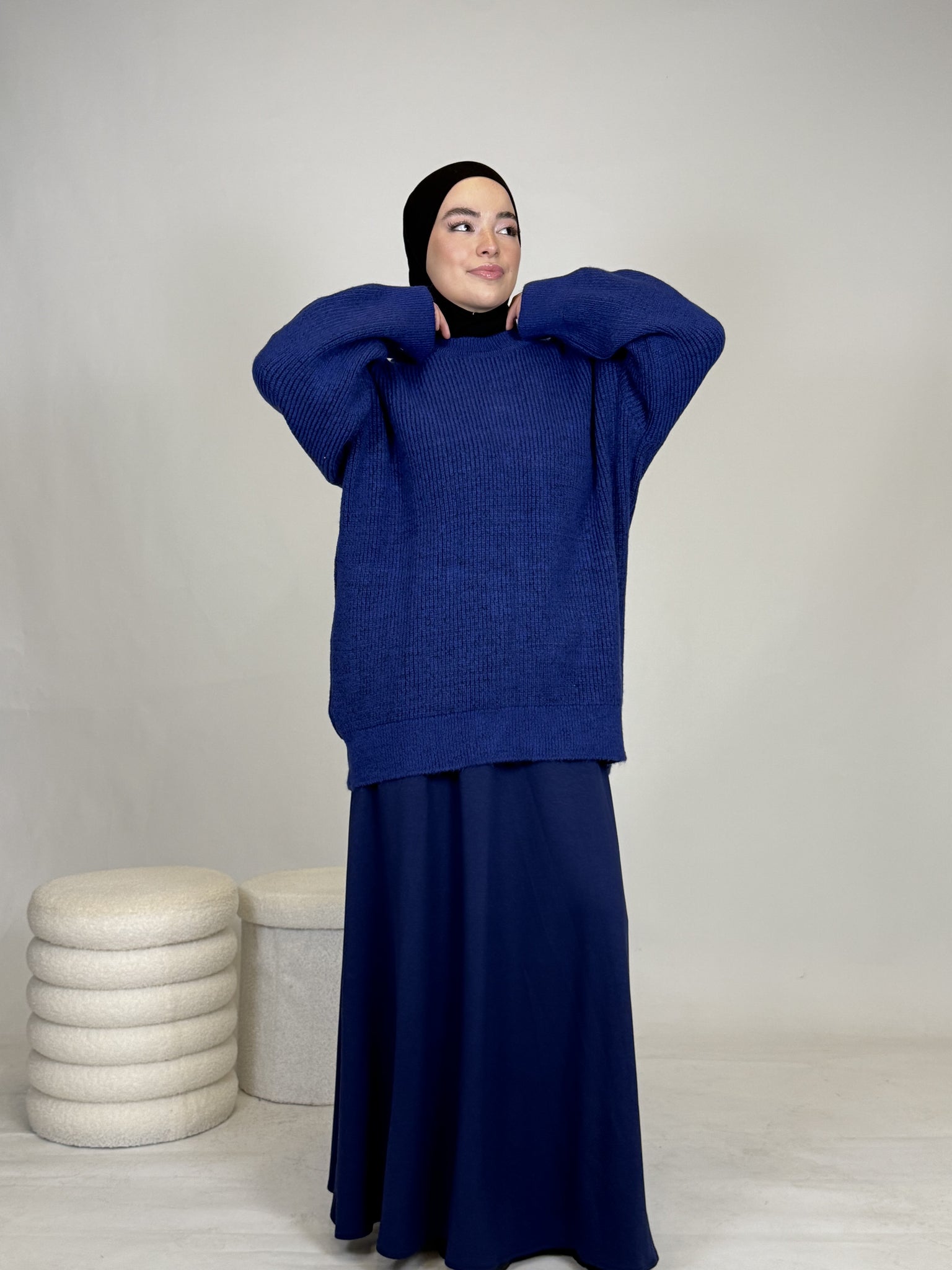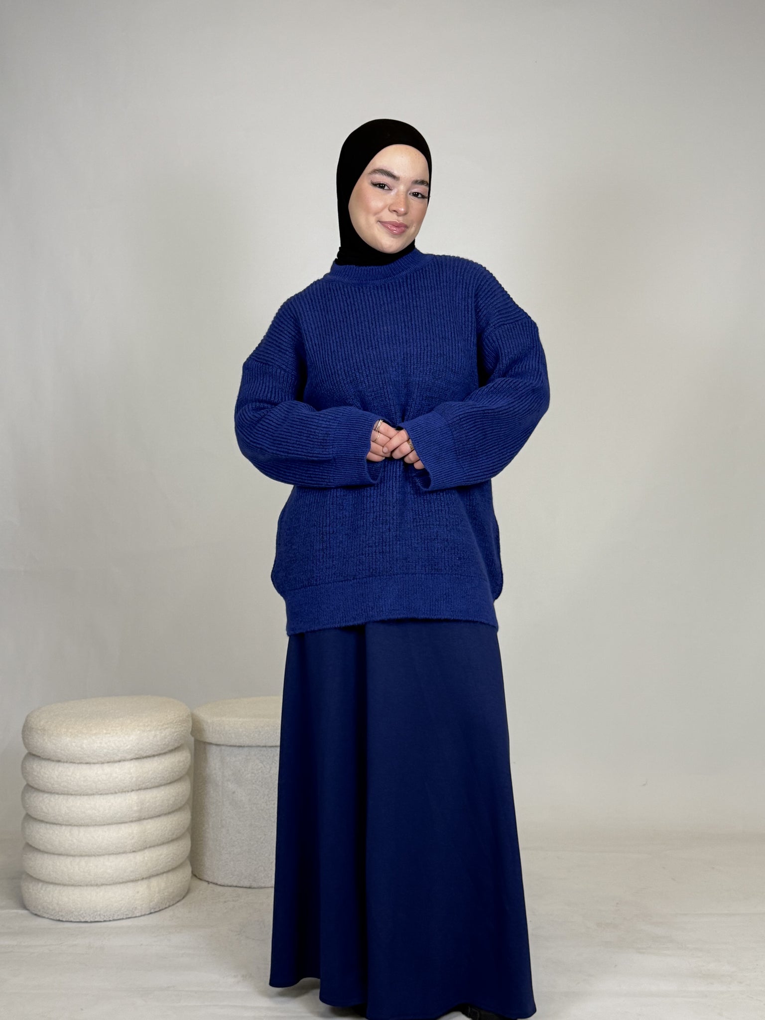 Dank seines vielseitigen Designs lässt sich das Oberteil mühelos kombinieren: lässig mit einer Hose oder elegant mit einem Rock, wie auf dem Bild. Ob casual, chic oder cozy, dieses Teil passt sich deinem Style an.